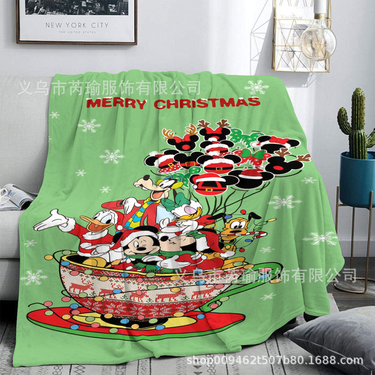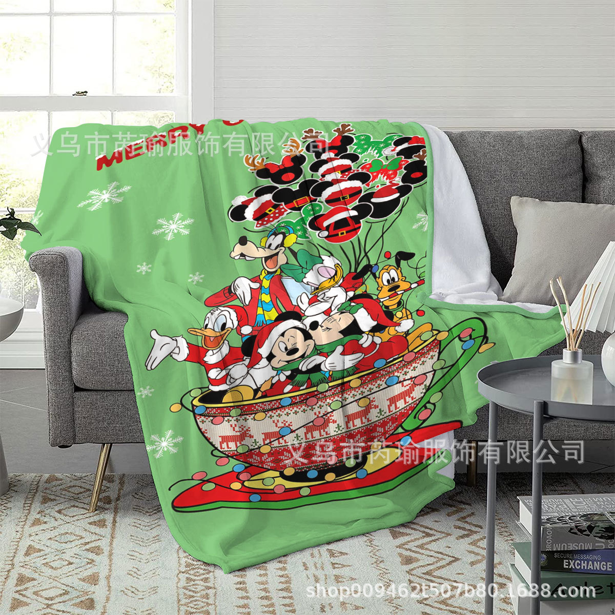 跨境卡通圣诞节礼物印花毛毯家用客厅卧室睡觉节日氛围法兰绒盖毯