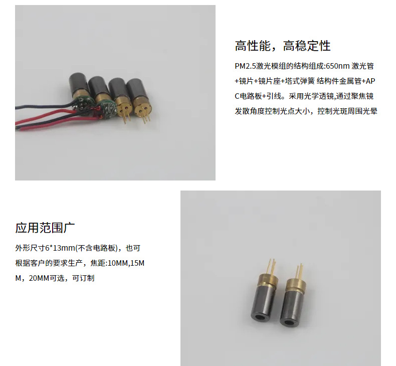 PM2.5粉尘传感器激光头650nm光点状激光发射器车载pm2.5激光模组