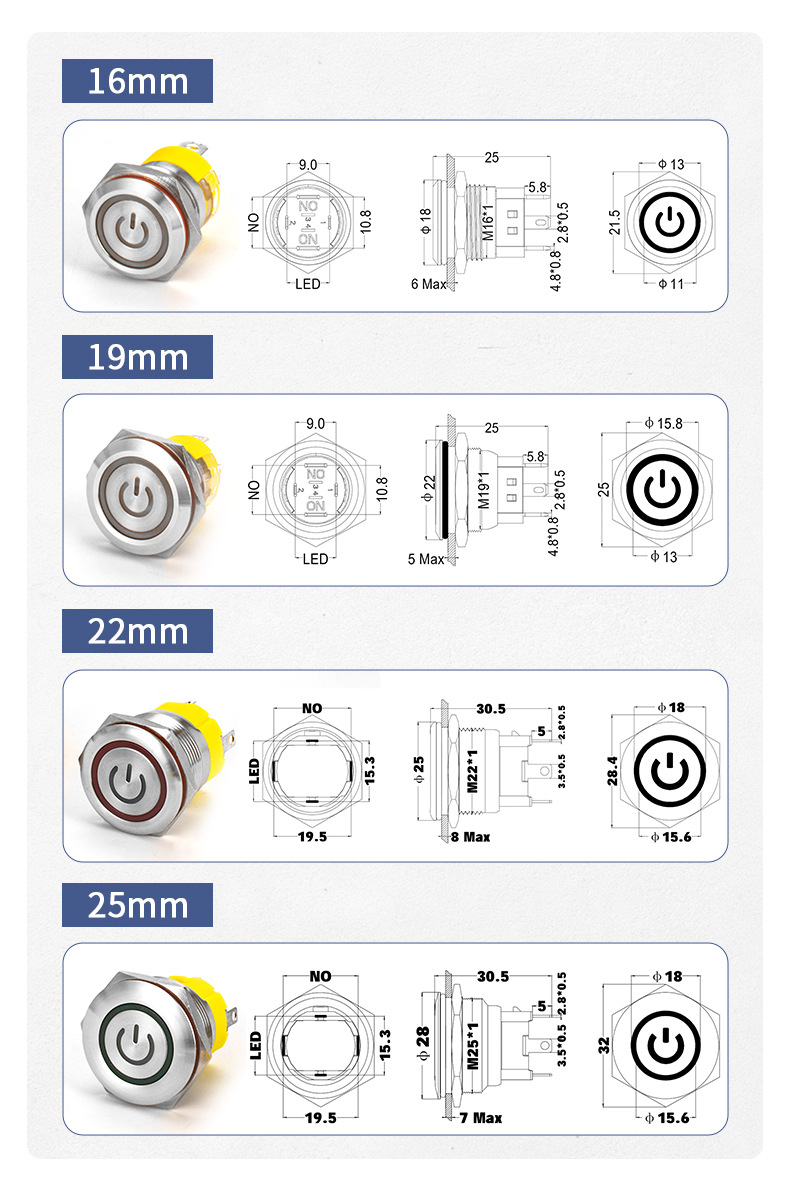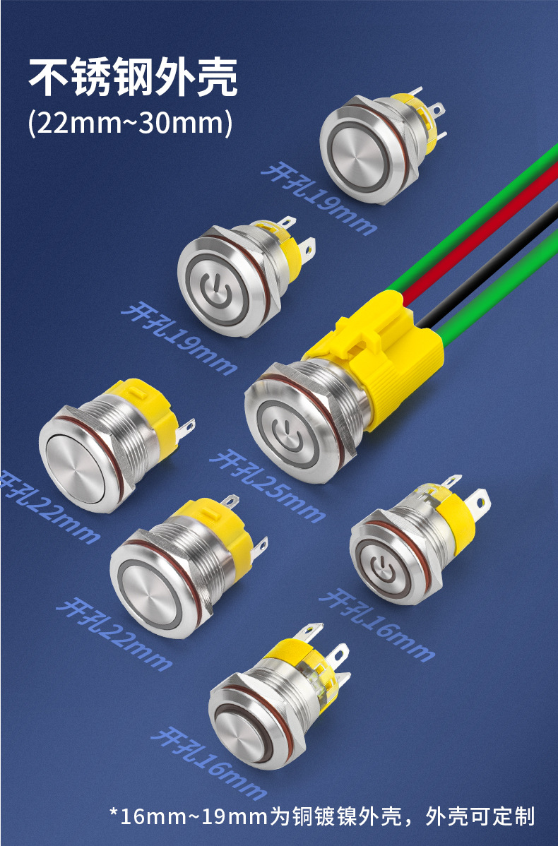 16/19/22/25MM金属按钮开关自锁喇叭汽车大电流功率防水功放短款