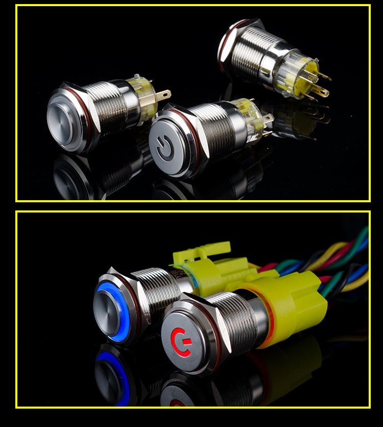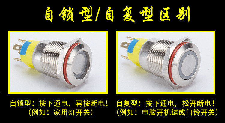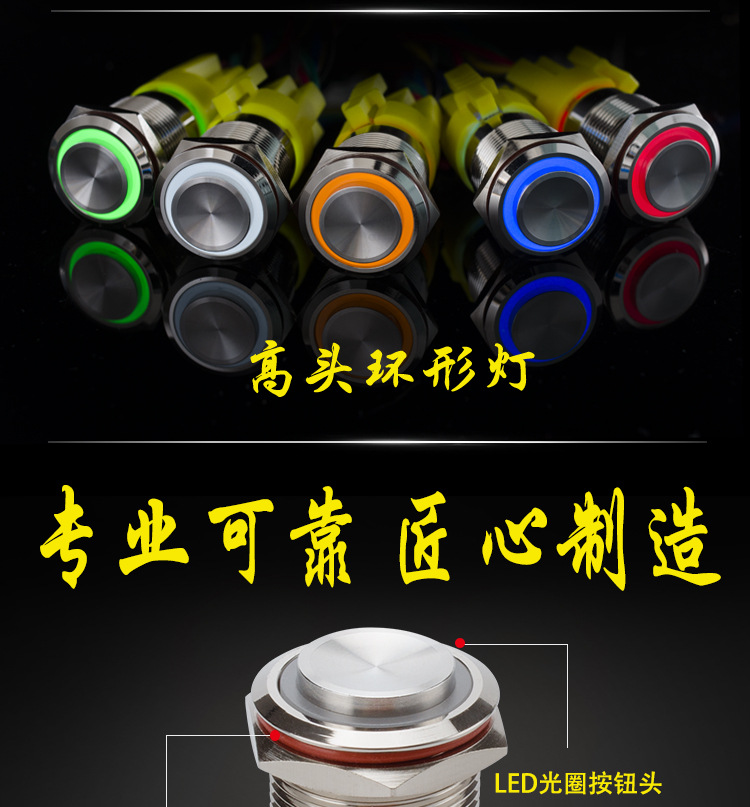 19mm金属按钮开关带灯自锁环形LED防水面板按键圆形防水环形灯