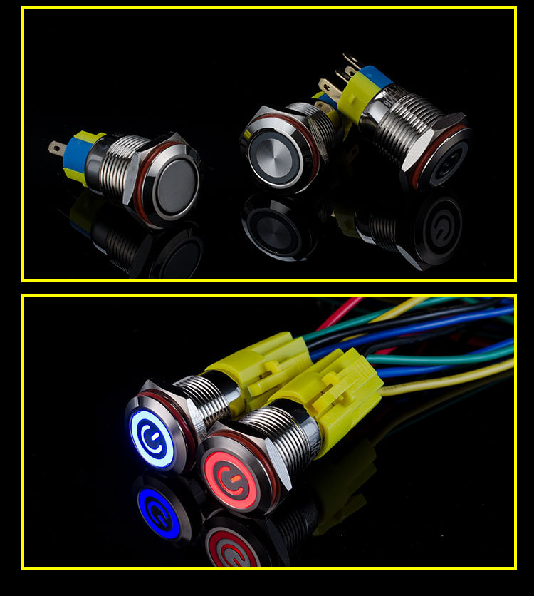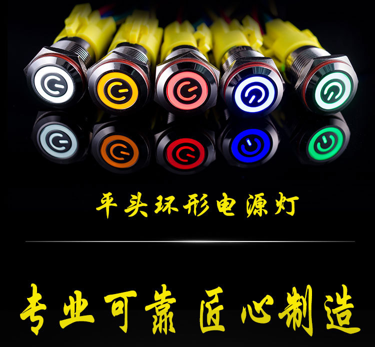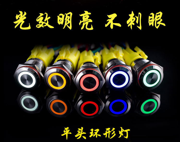FY16B金属按钮开关自锁带灯环形功放启动停止按键12v 24v 220v
