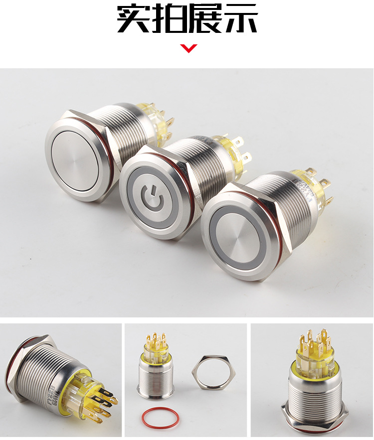 22mm金属按钮开关两开两闭双控防水点动小型圆形带灯两路双闪