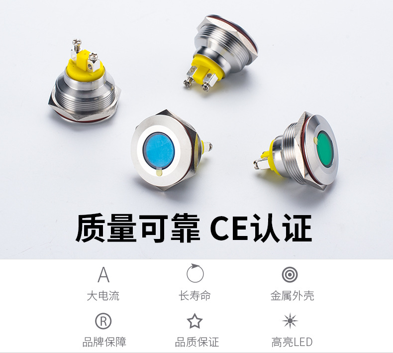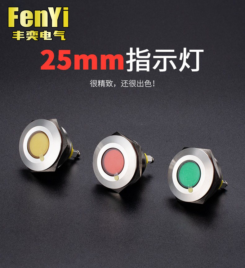 丰奕25mmLED防水金属指示灯螺丝脚发光二极管信号灯配电柜电源