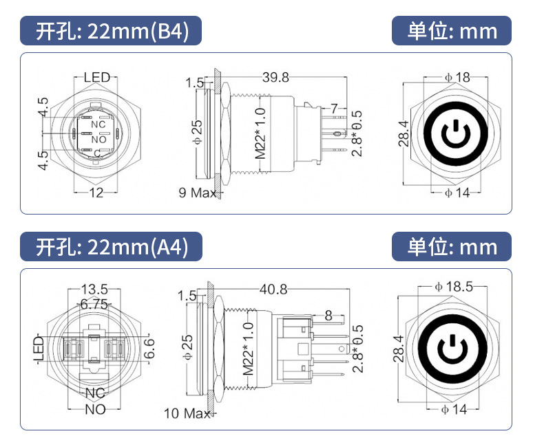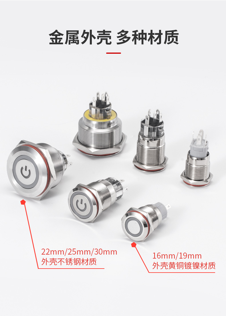 金属按钮开关钮子圆形按压式带灯复位自锁电源A4微型防水按键FYB4
