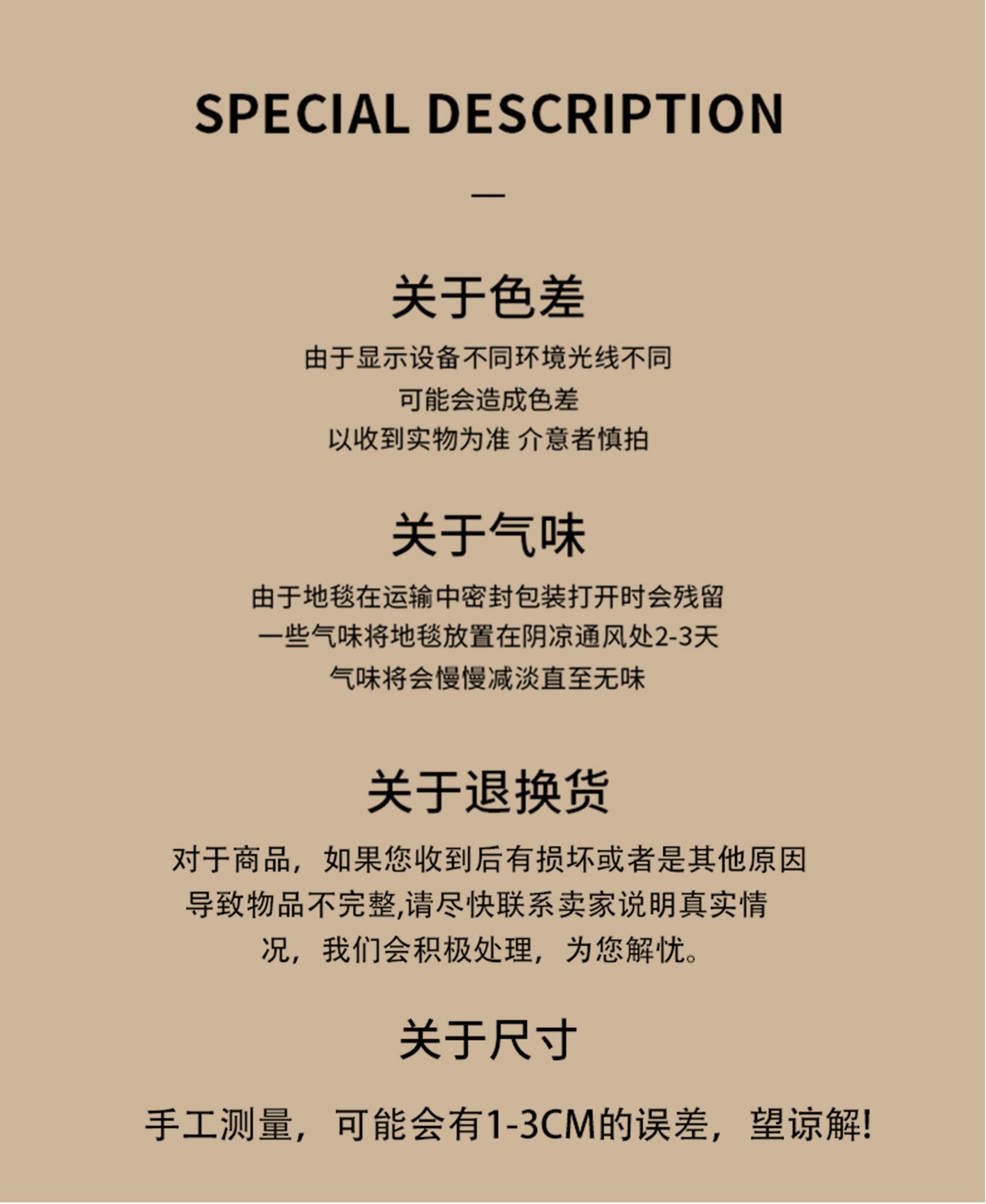 - 关于色差:拍照光线问题稍许色差可以接受需要实物材质图联系客服