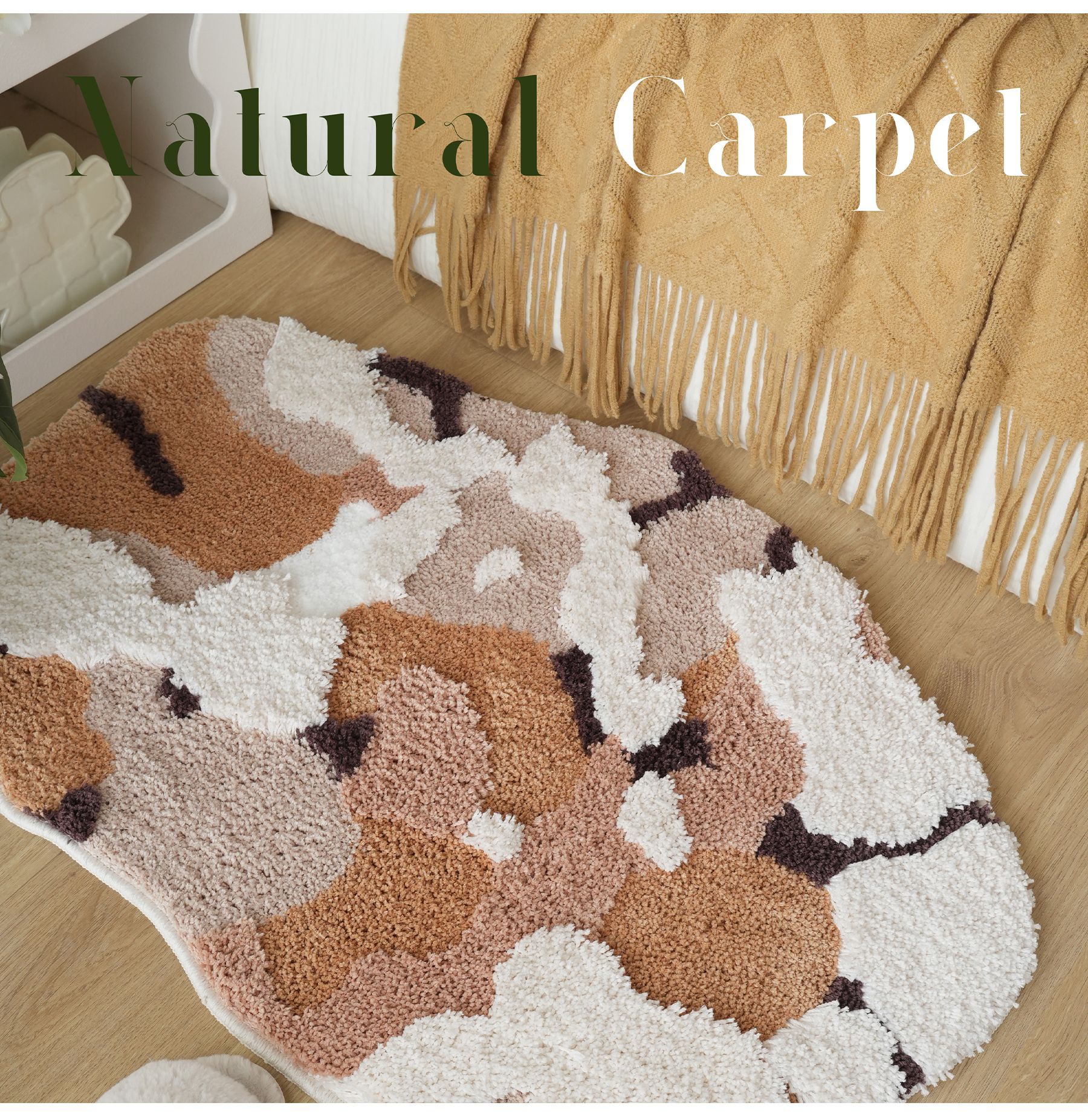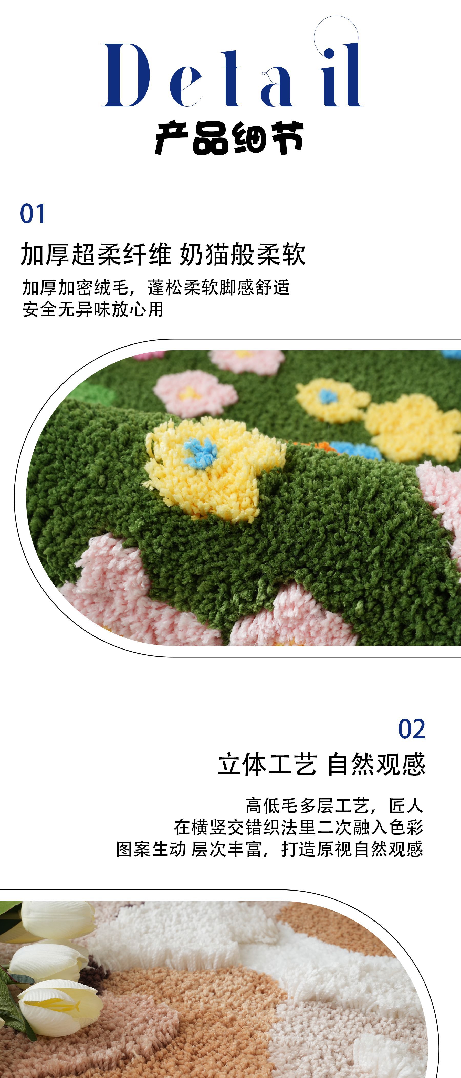 ins不规则机洗床边毯小清新苔藓凹凸提花加密地毯可折叠植绒地垫
