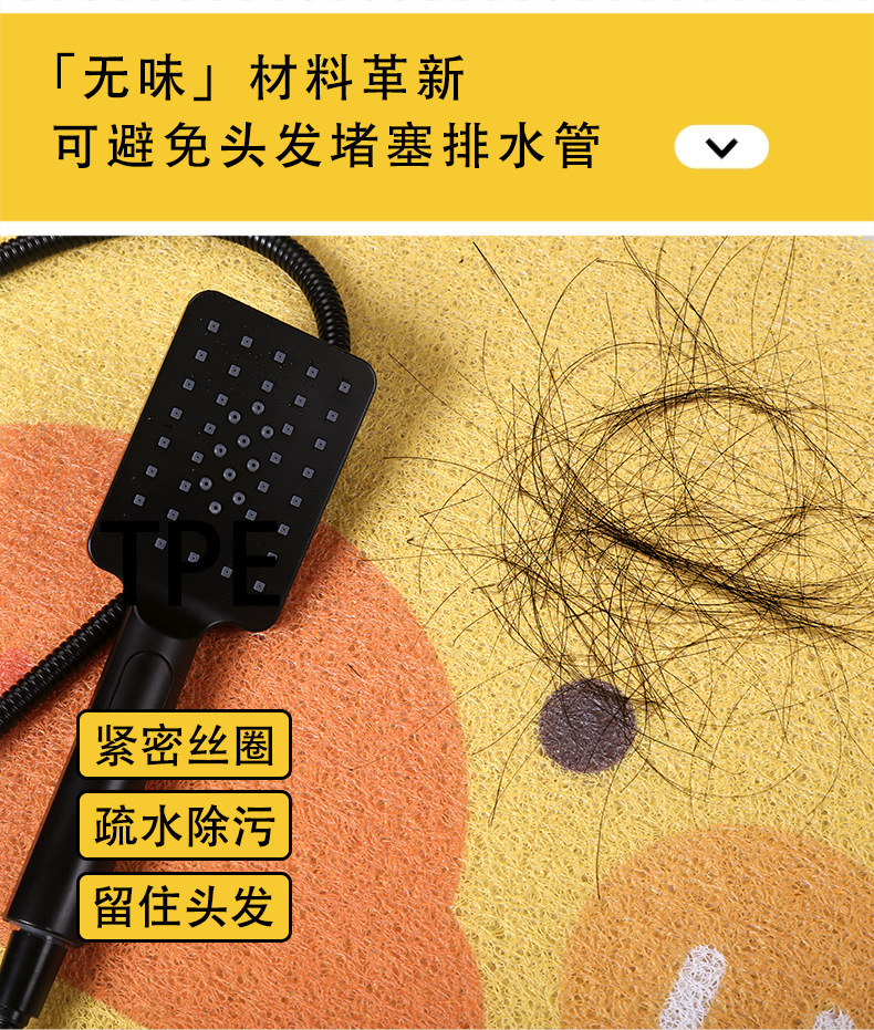 卡通淋浴间沥水垫家用洗澡间防滑垫卫生间镂空丝圈地垫防摔排水垫
