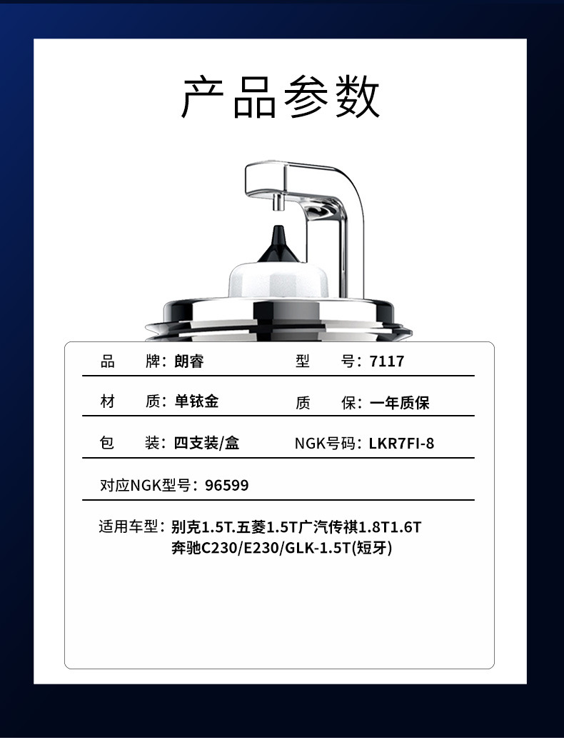 - 规格:铱金火花塞NGK96599 LKR7FI-8
