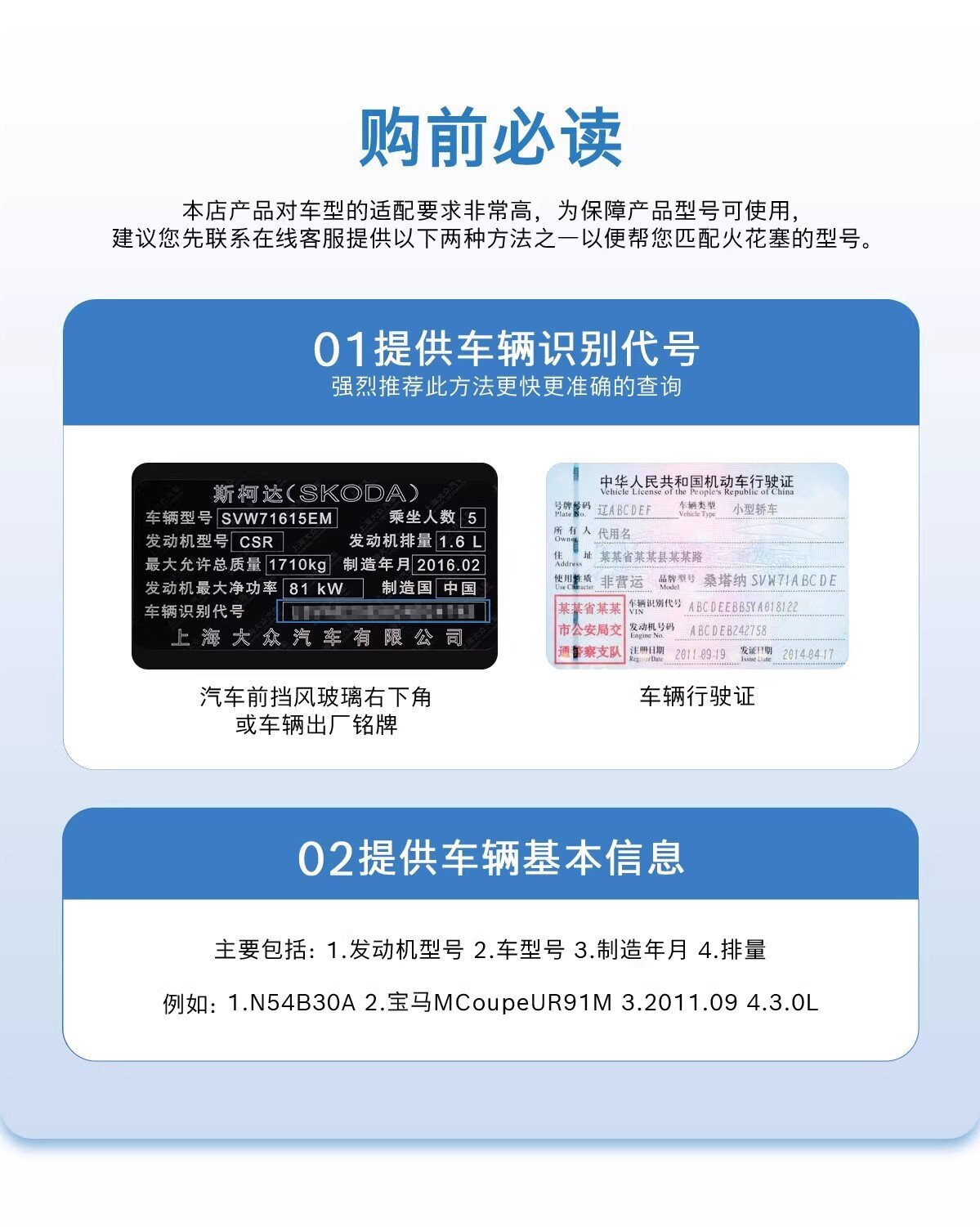 - 适用车型年份:原车出厂时间