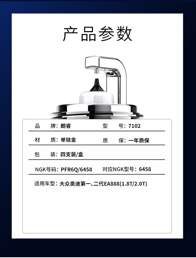 - 规格:铱金火花塞4个装PFR6Q NGK:6458