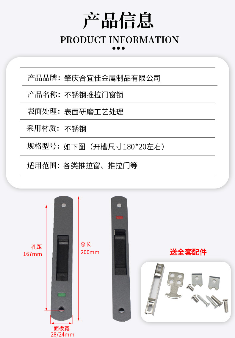 专业厂家定制不锈钢推拉门窗锁安全锁 移门阳台门钩锁单双面锁扣