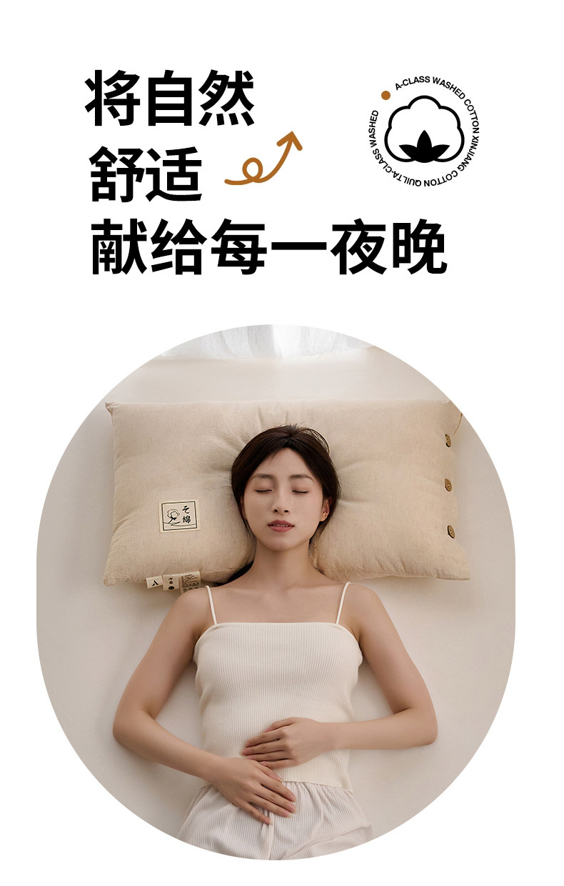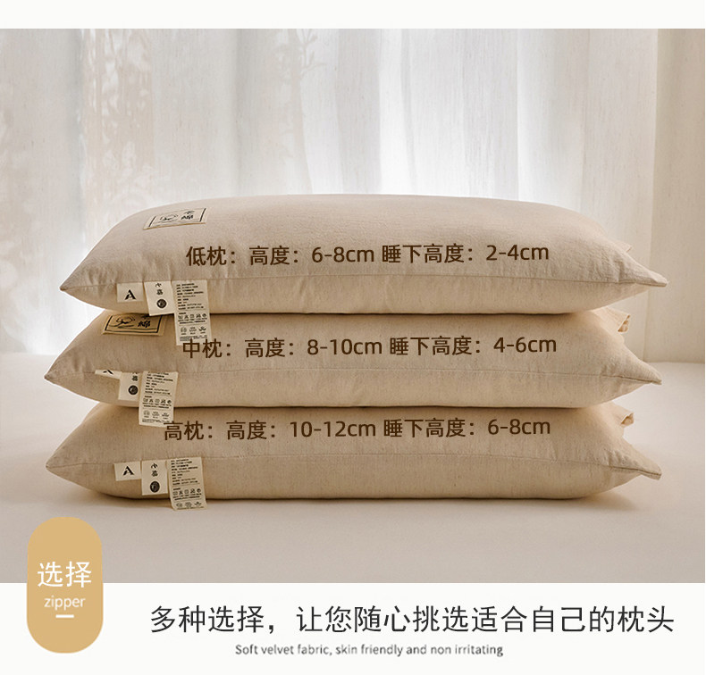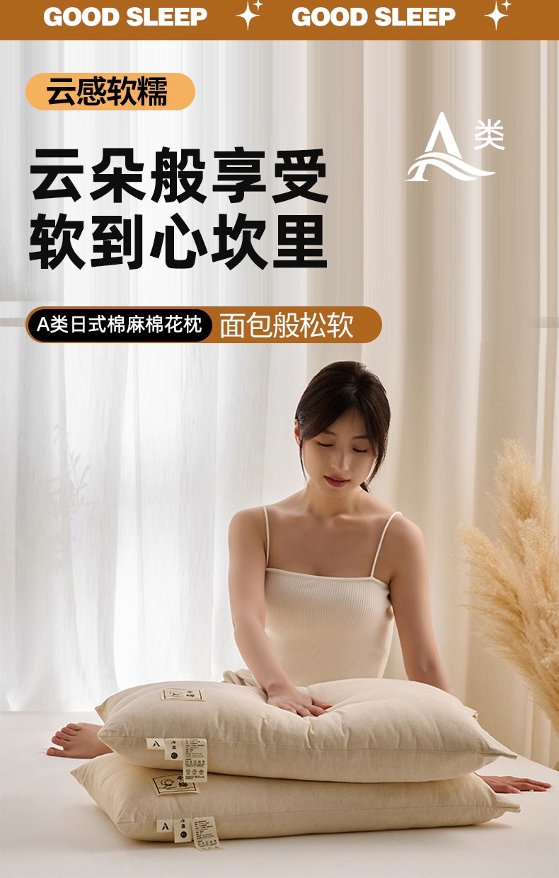 日式棉麻纯棉花枕头护颈椎助睡眠学生宿舍人用成人枕芯可拆洗
