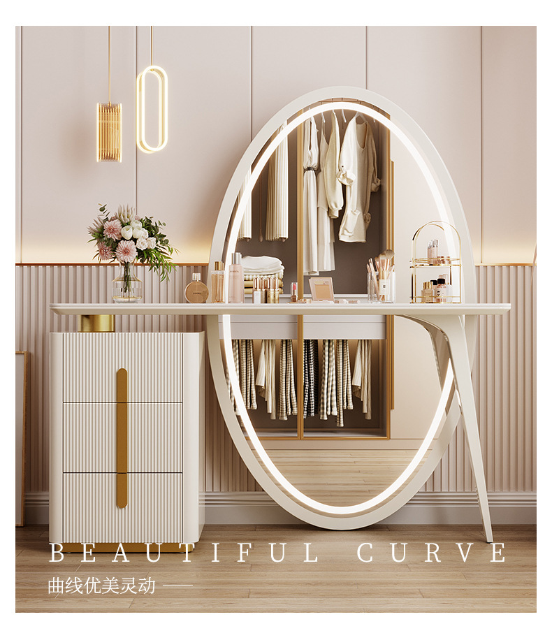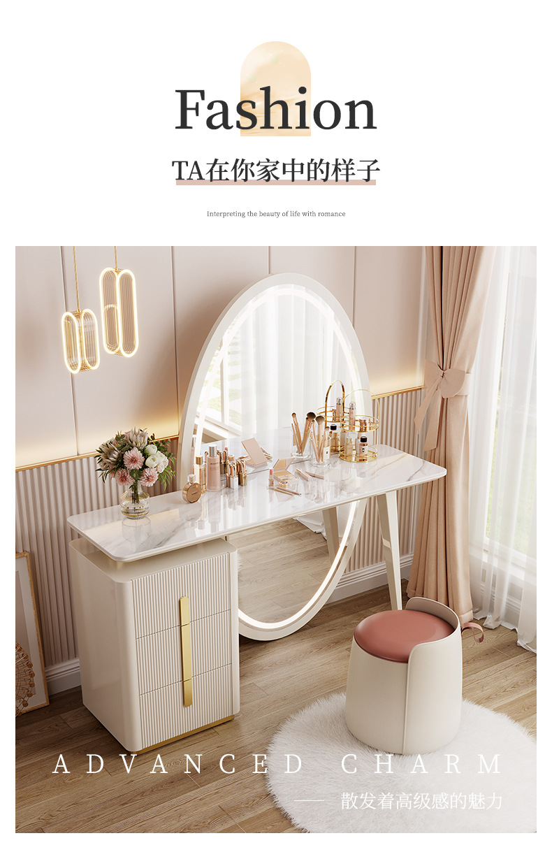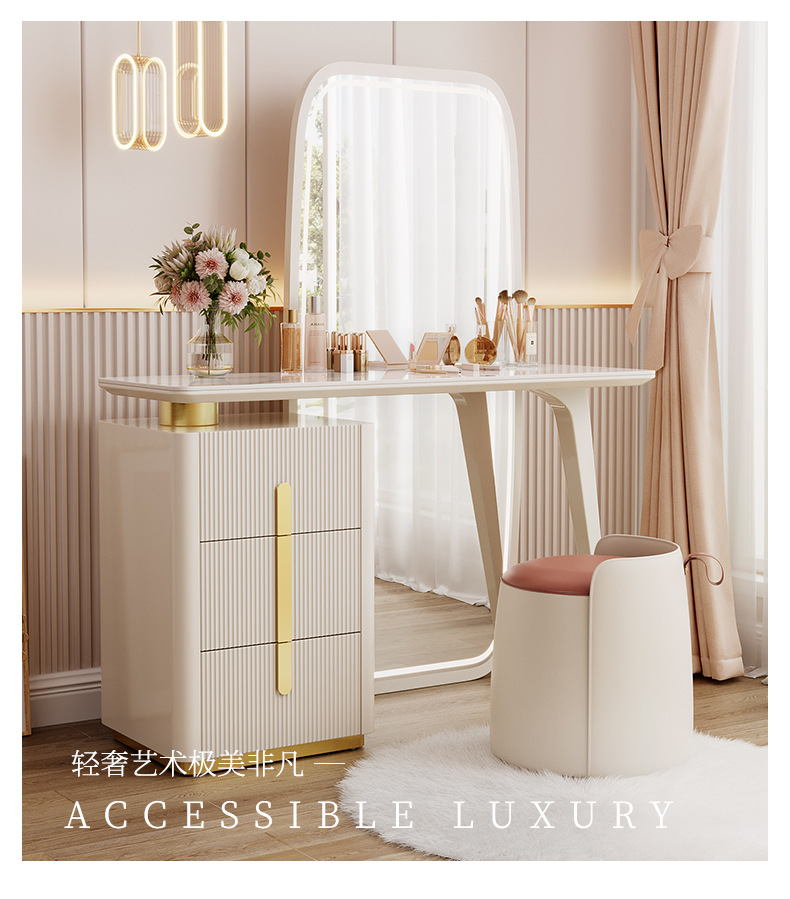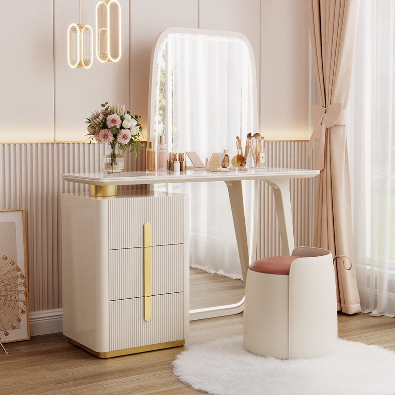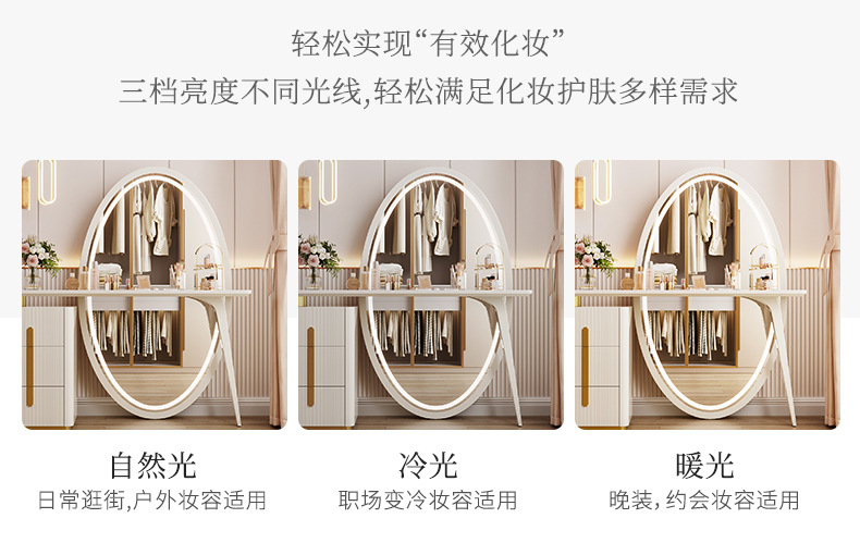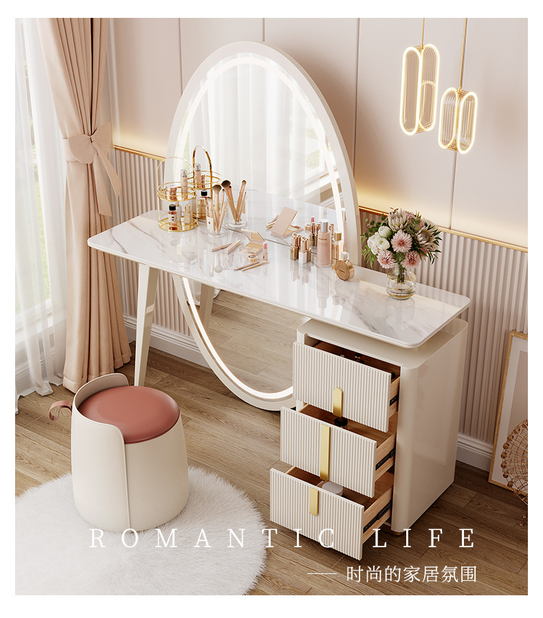 现代简约梳妆台卧室主卧书桌化妆台岩板轻奢全身穿衣镜一体收纳柜