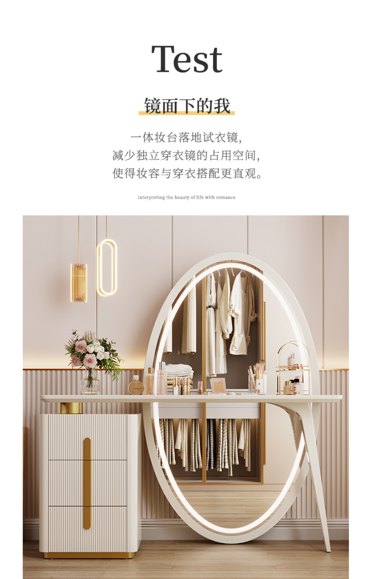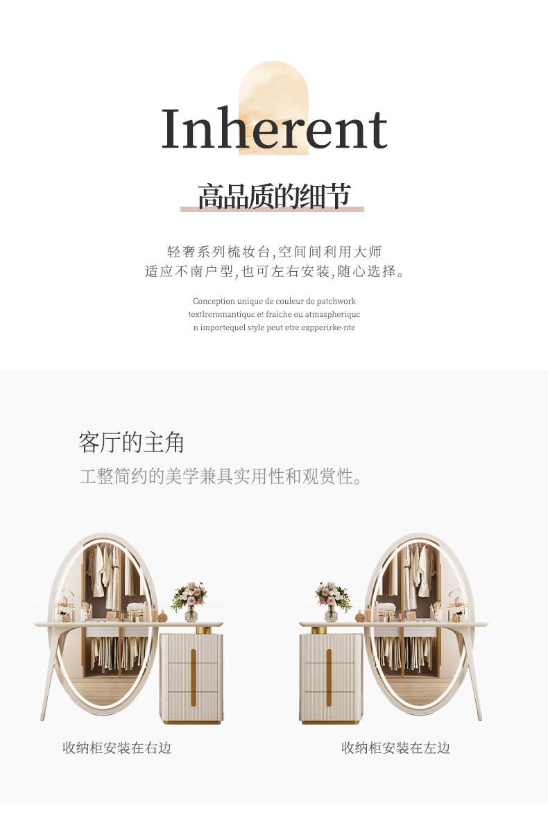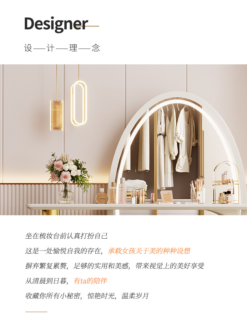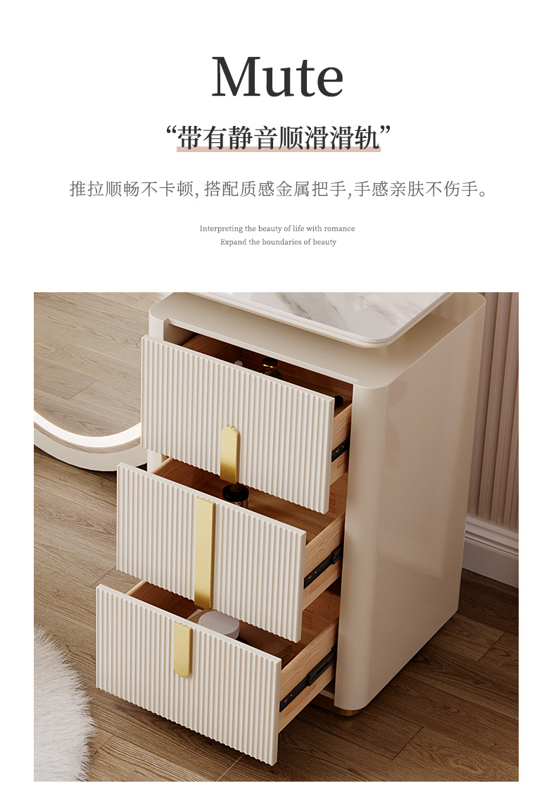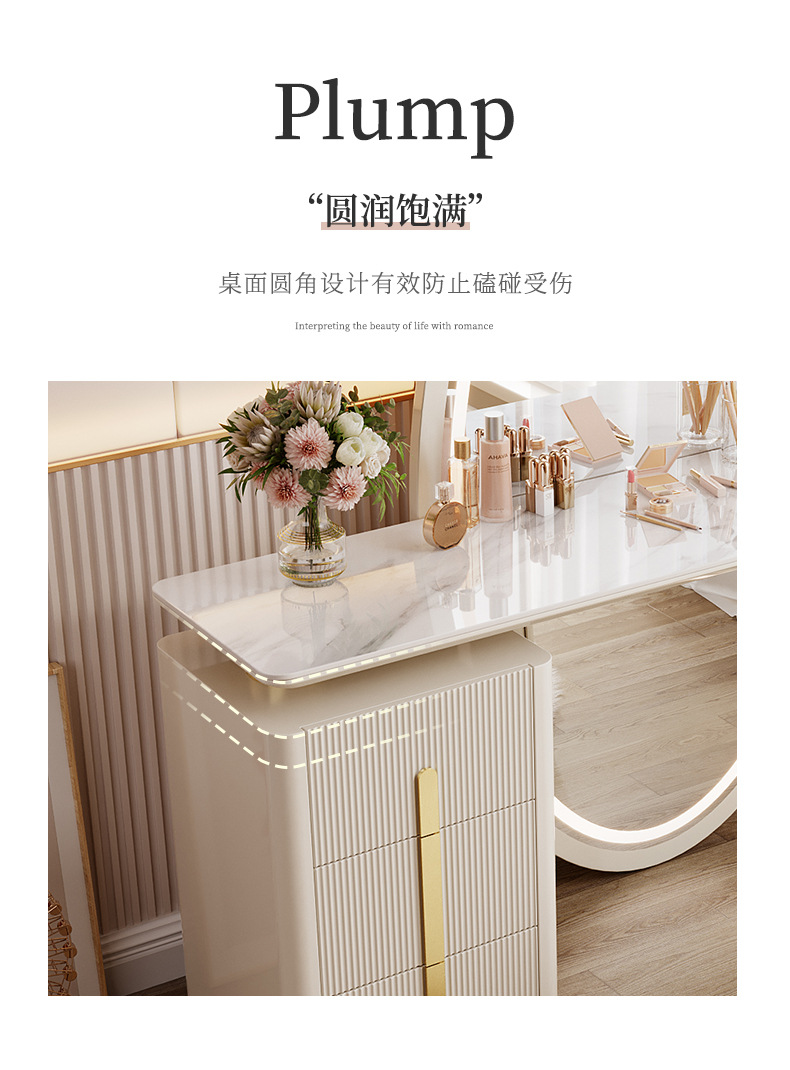 现代简约梳妆台卧室主卧书桌化妆台岩板轻奢全身穿衣镜一体收纳柜