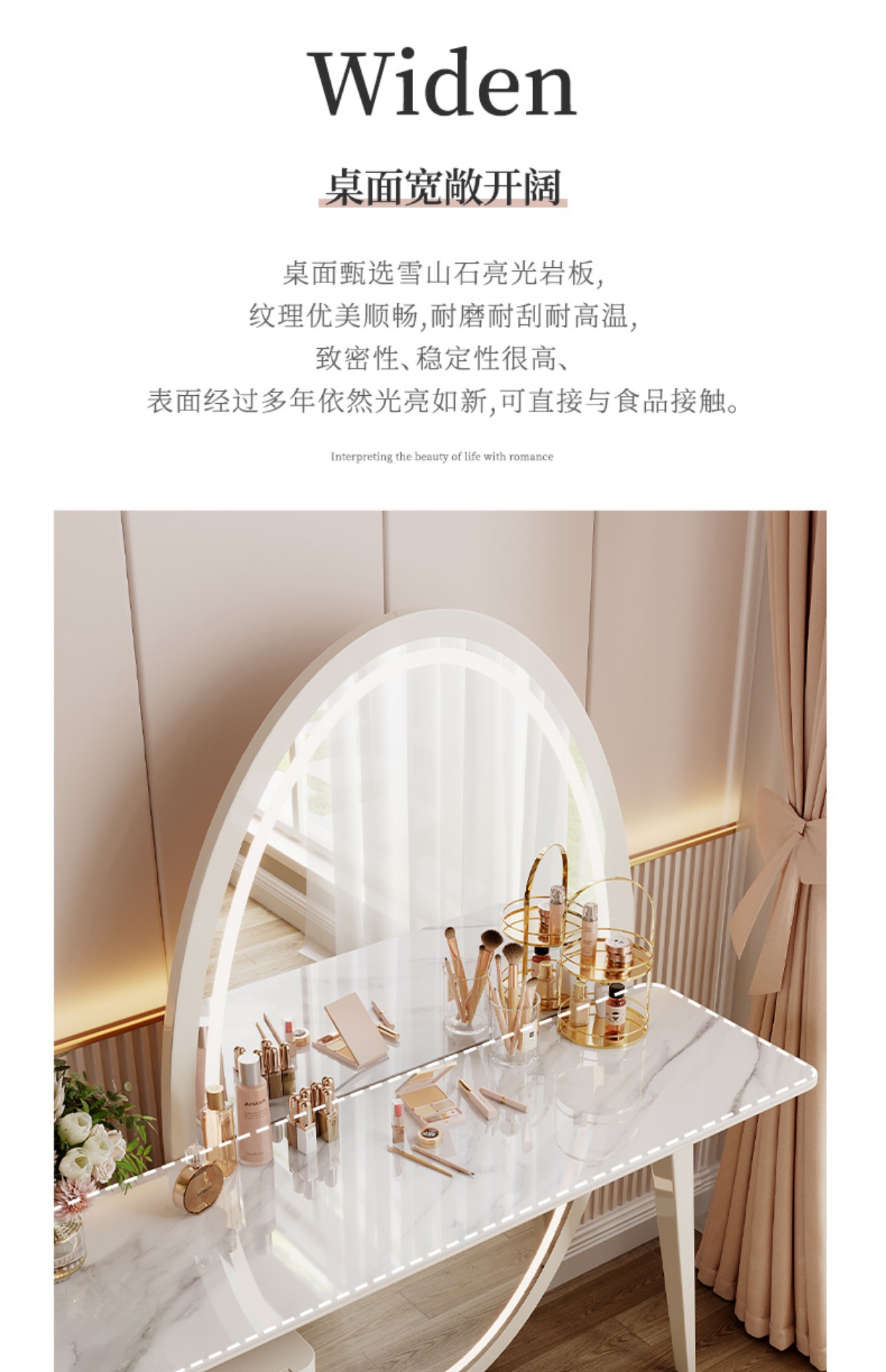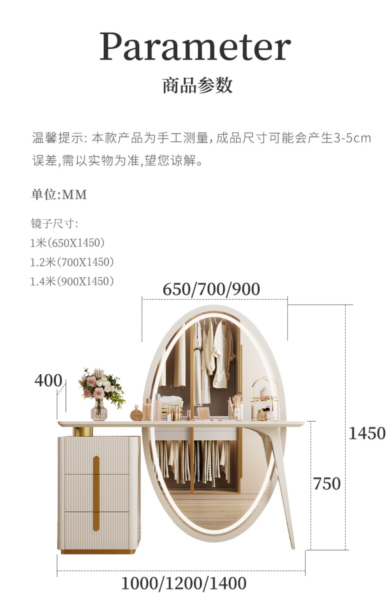 - 尺寸:1400*400*780妆台含凳妆台