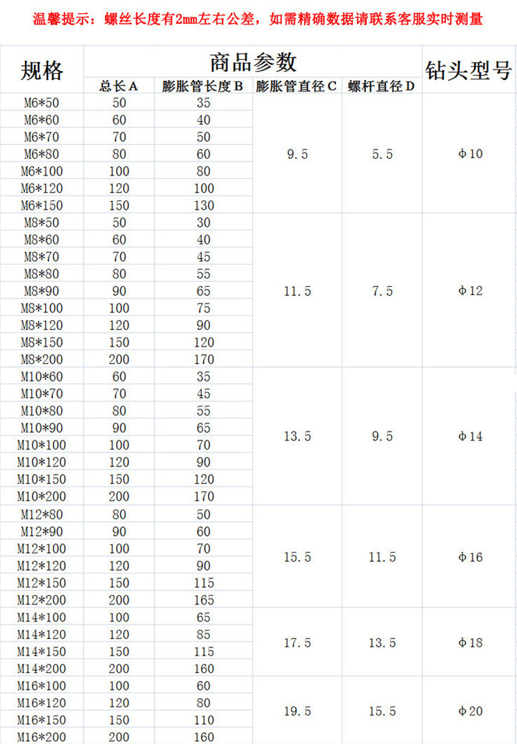 - 规格型号:M20*200(304不锈钢)