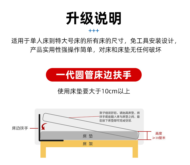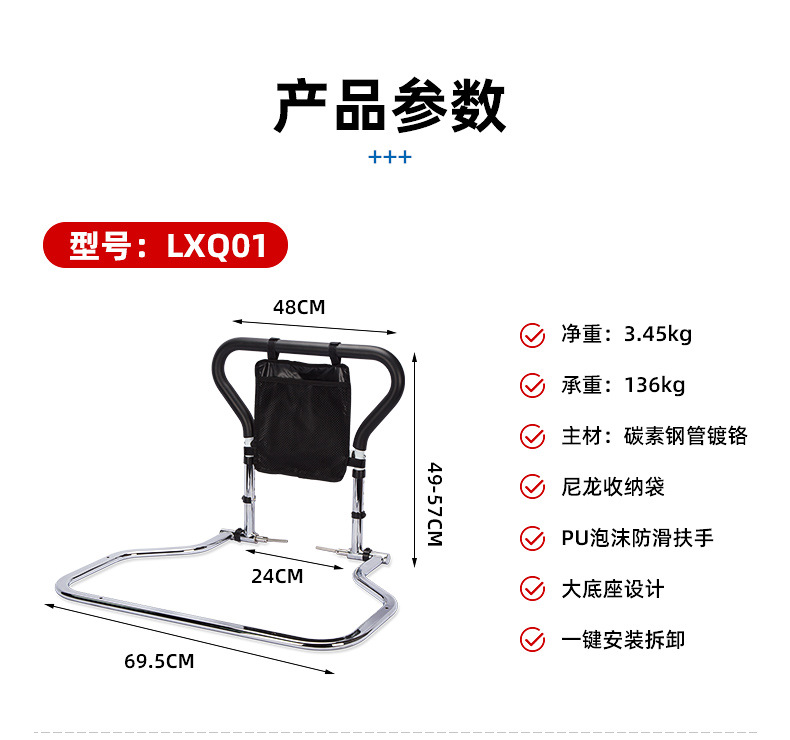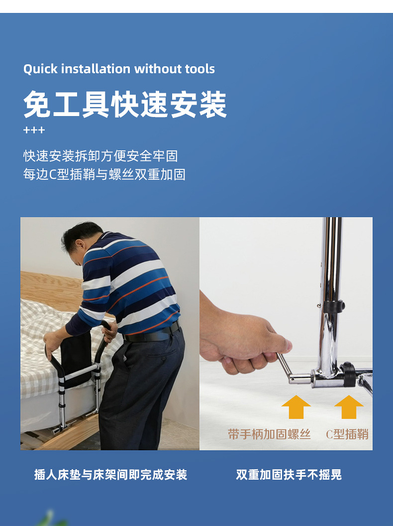 老人起身辅助器 可折叠床边扶手免打孔残疾人孕妇起床助力扶手架