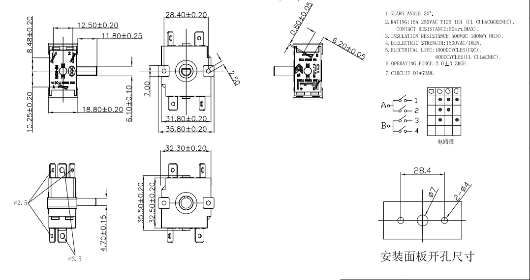 多种功能选择16A旋转开关档位清晰手感好质量稳定UL认证大功率