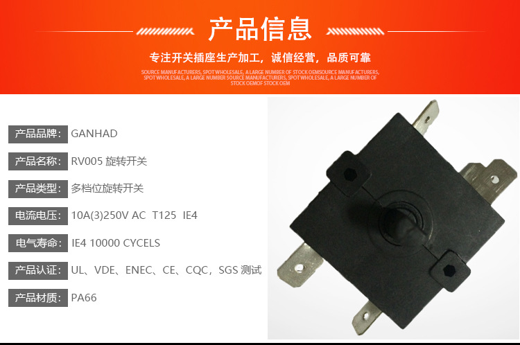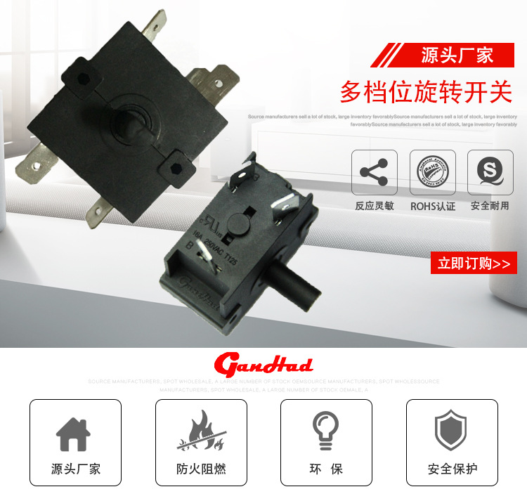 GanHad厂家直销大电流16A旋转开关 蒸汽吸尘器旋转开关多认证保障