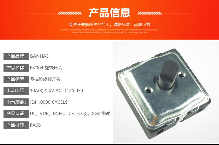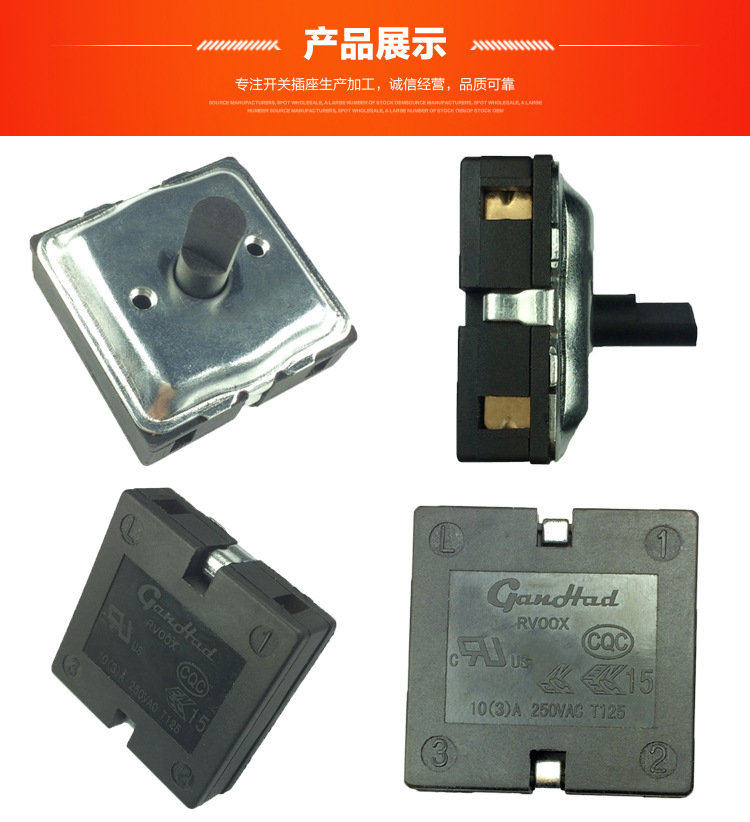 GANHADRV004铁壳旋转开关22.5度多档位波段可调阻燃材质分段