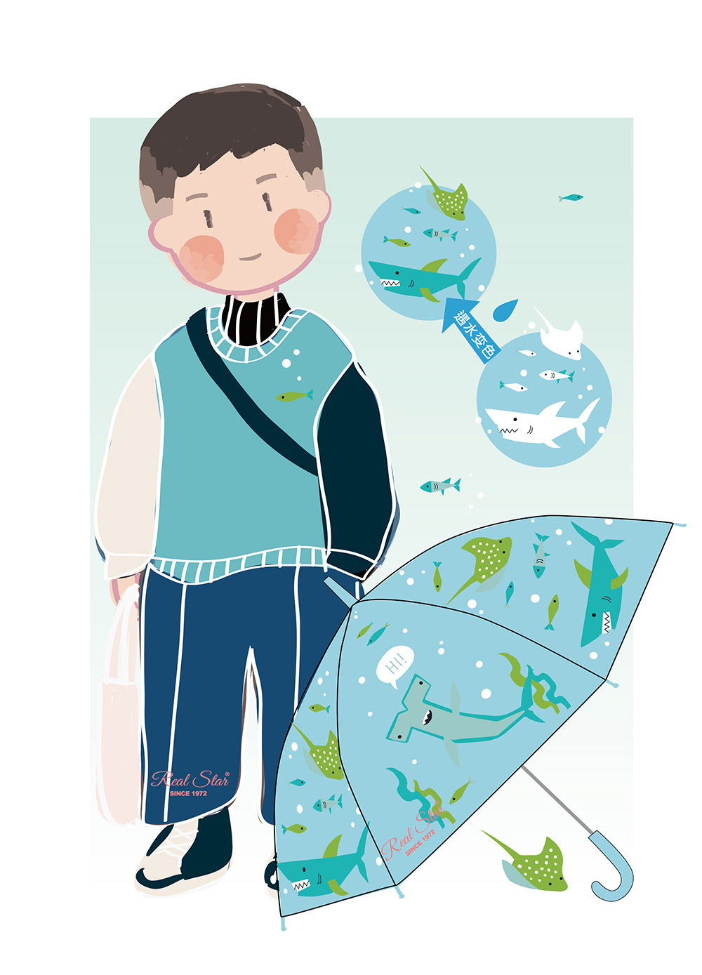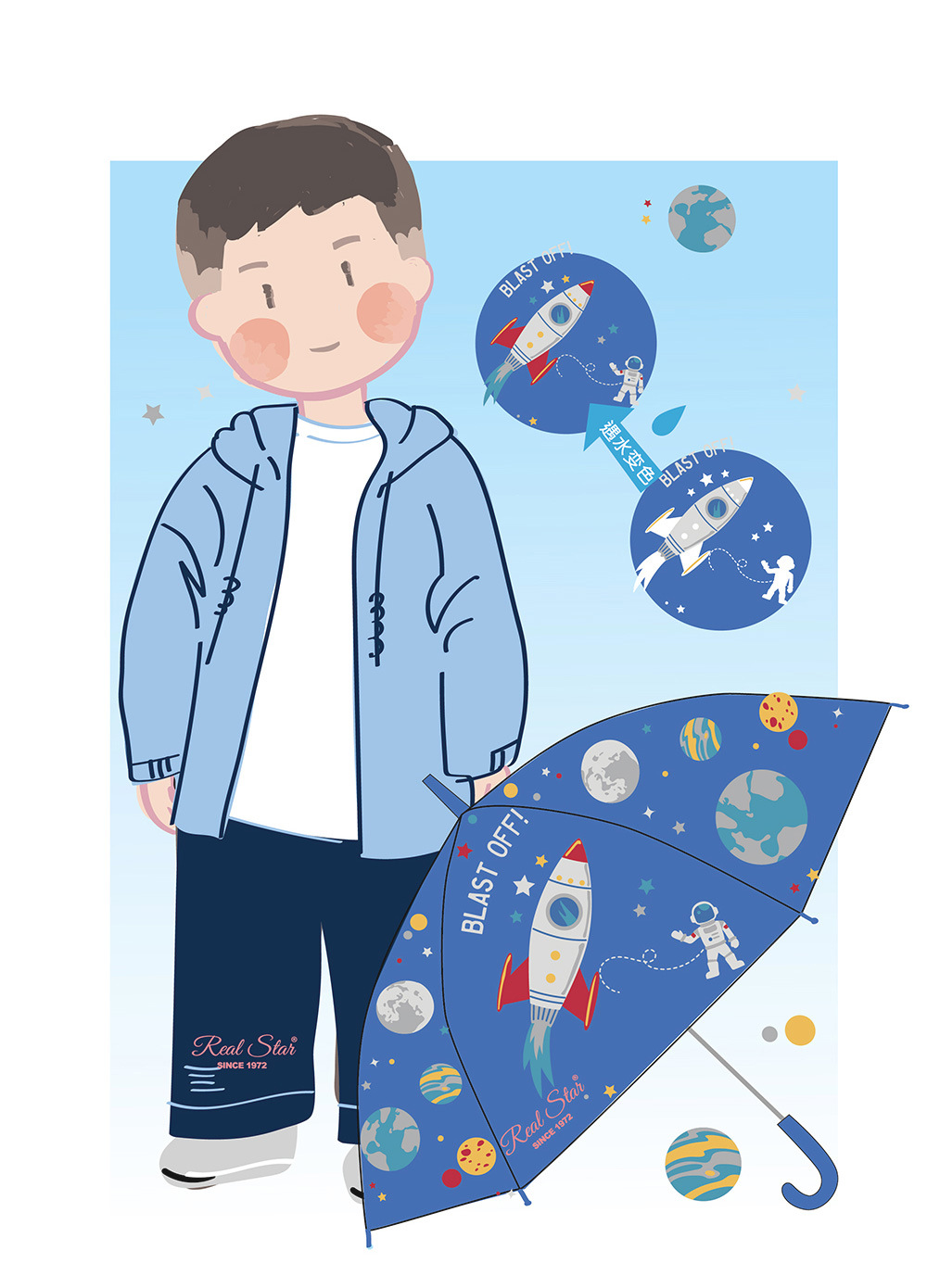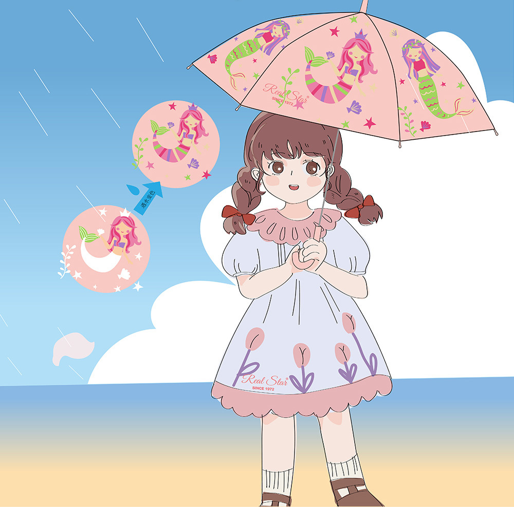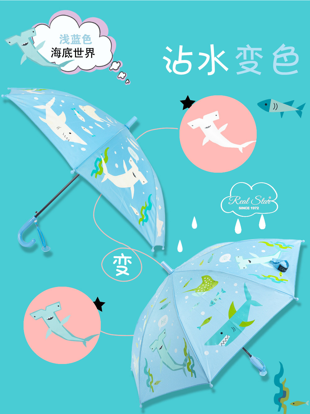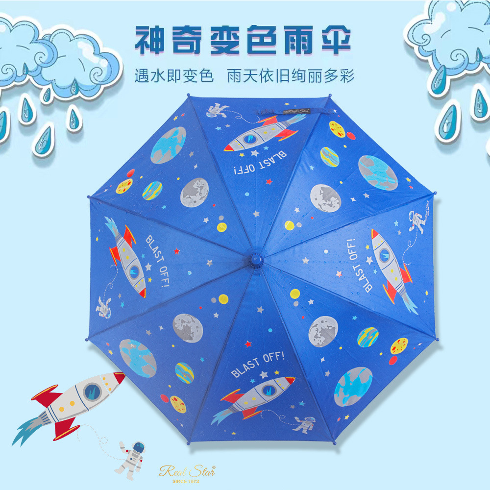 RST创意儿童雨伞学生幼儿园趣味遇水变色卡通美人鱼飞船卡通雨伞