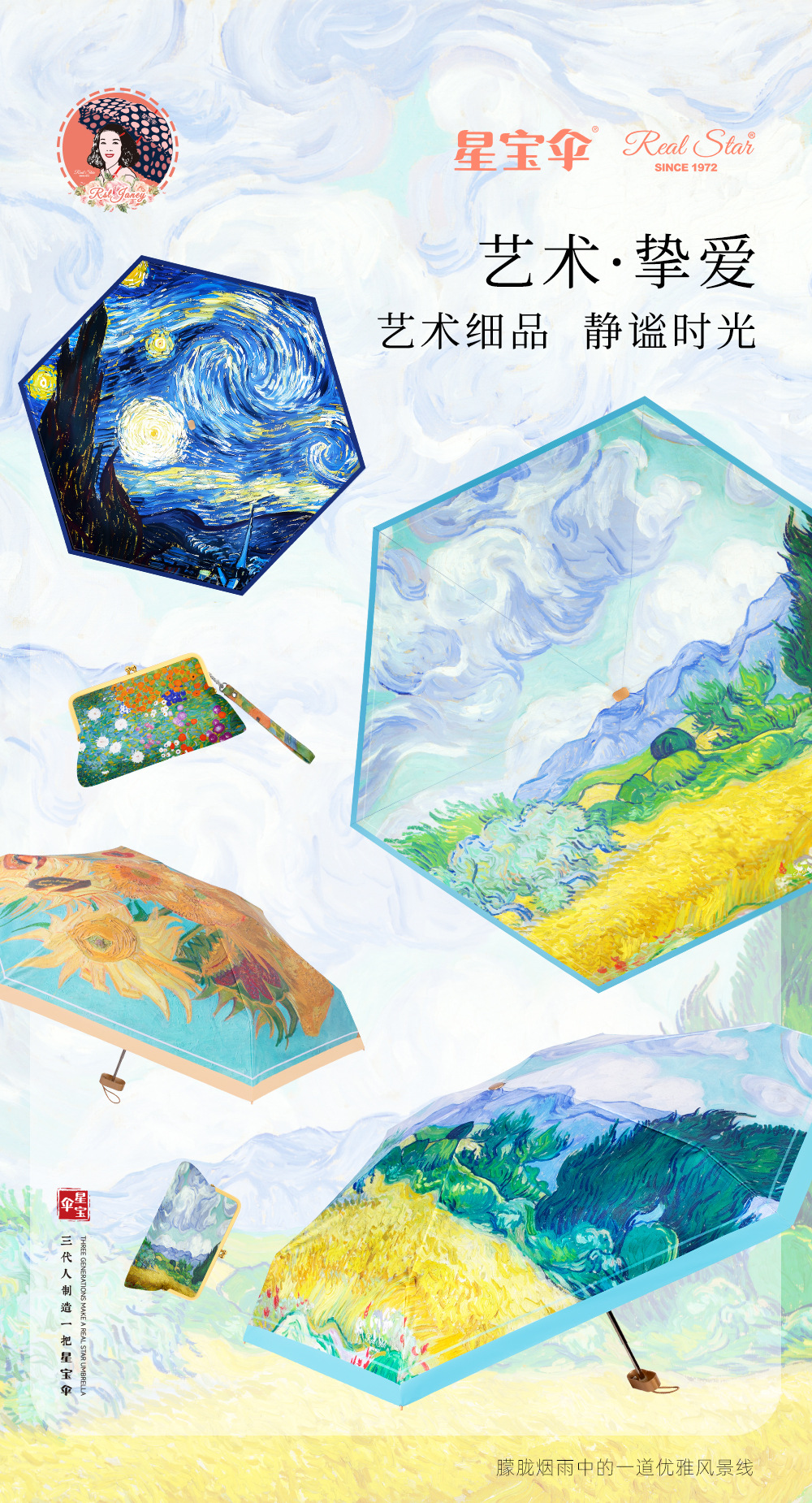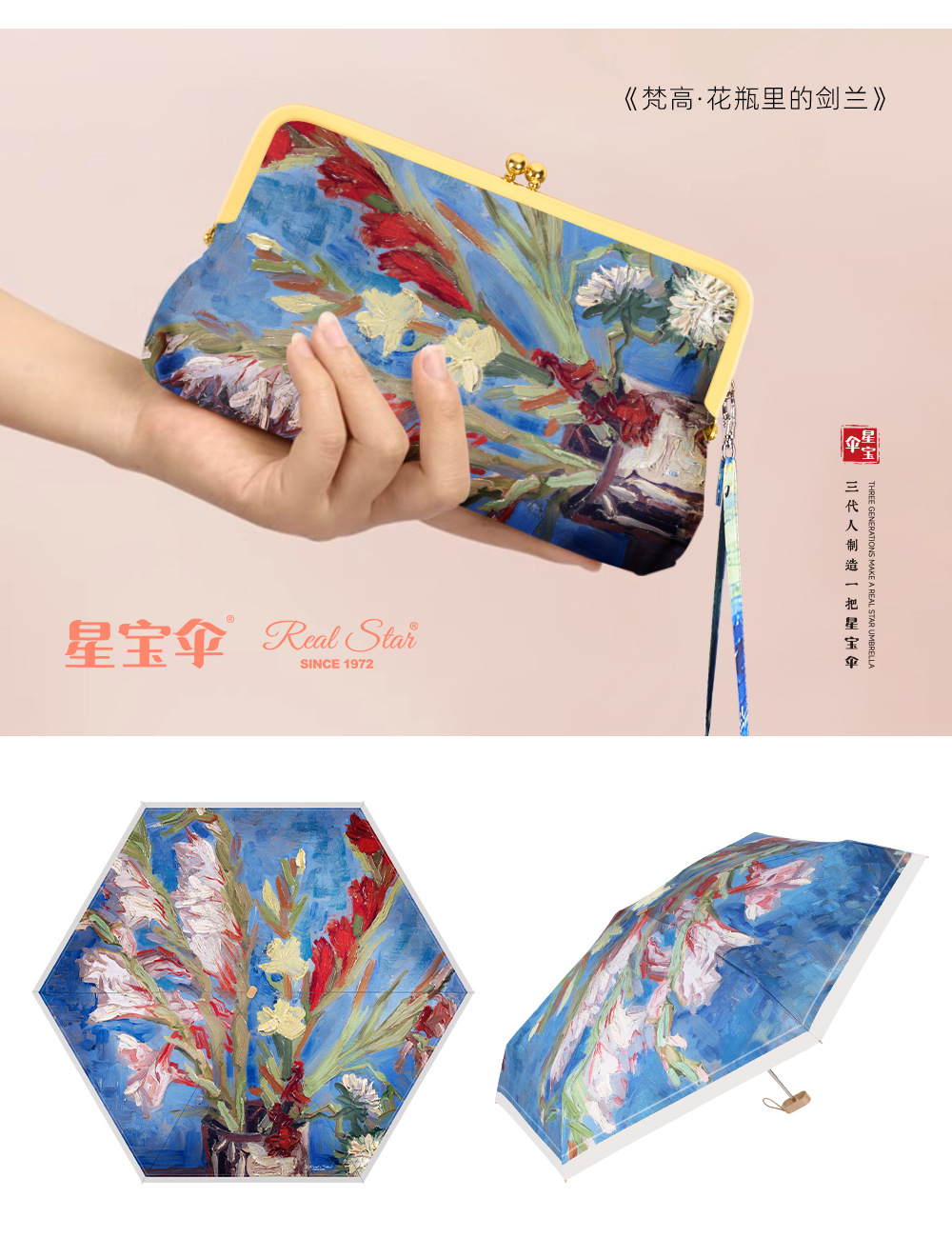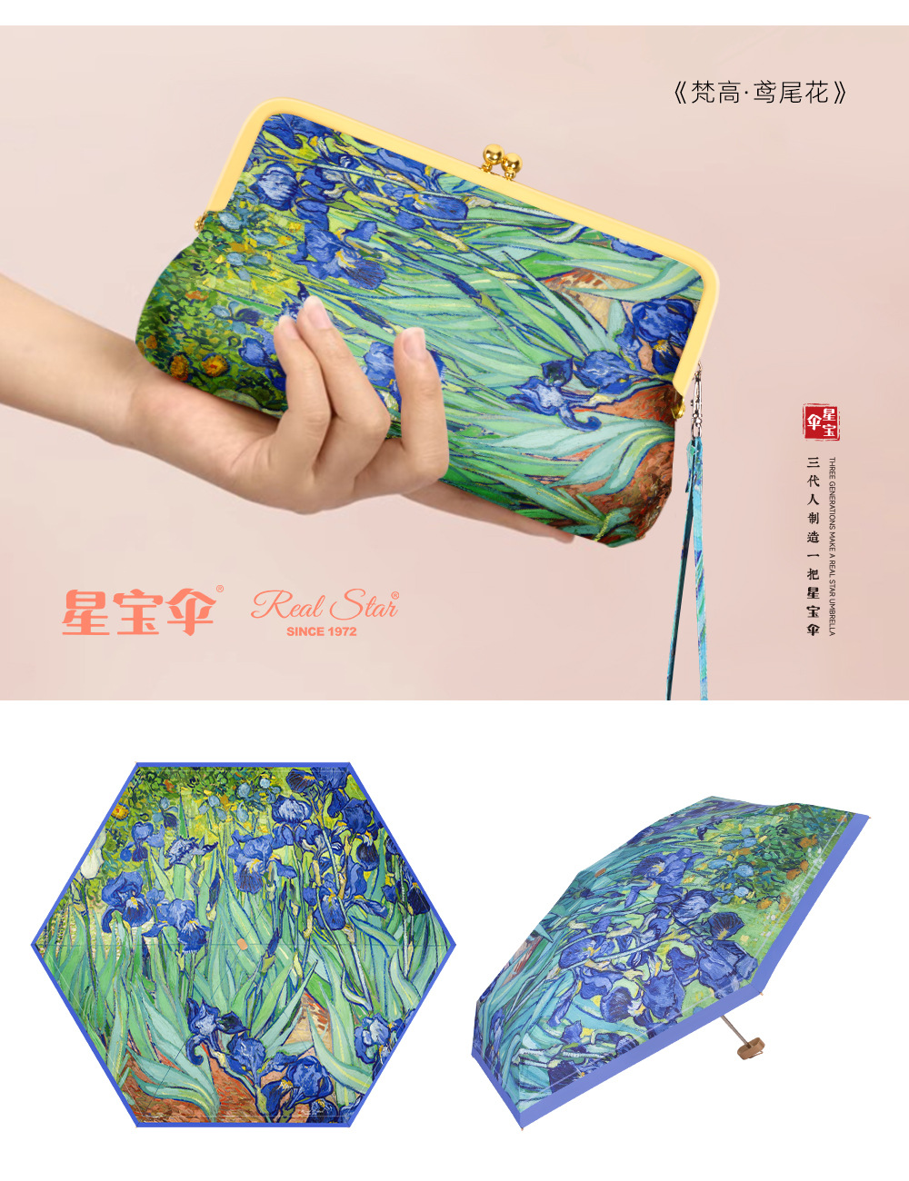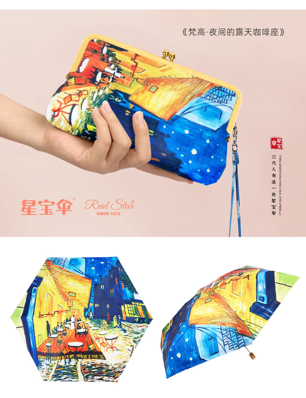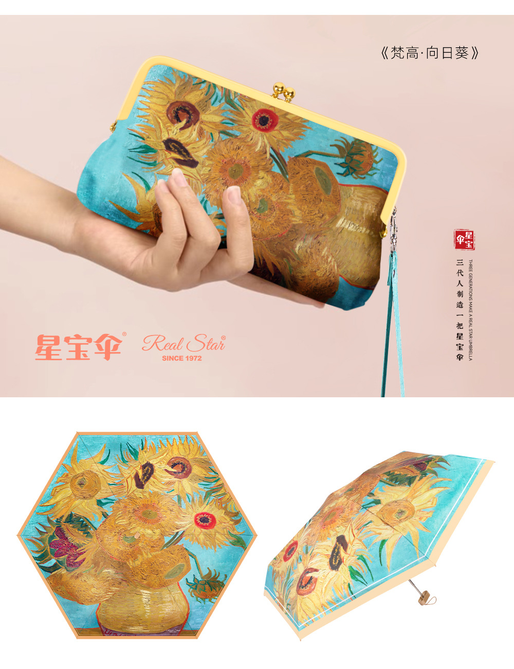 梵高莫奈油画伞 星空向日葵 彩胶防晒折叠伞 数码印伞 卡包雨伞