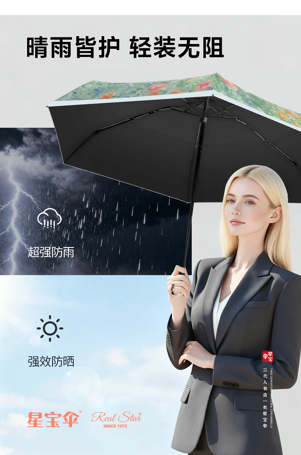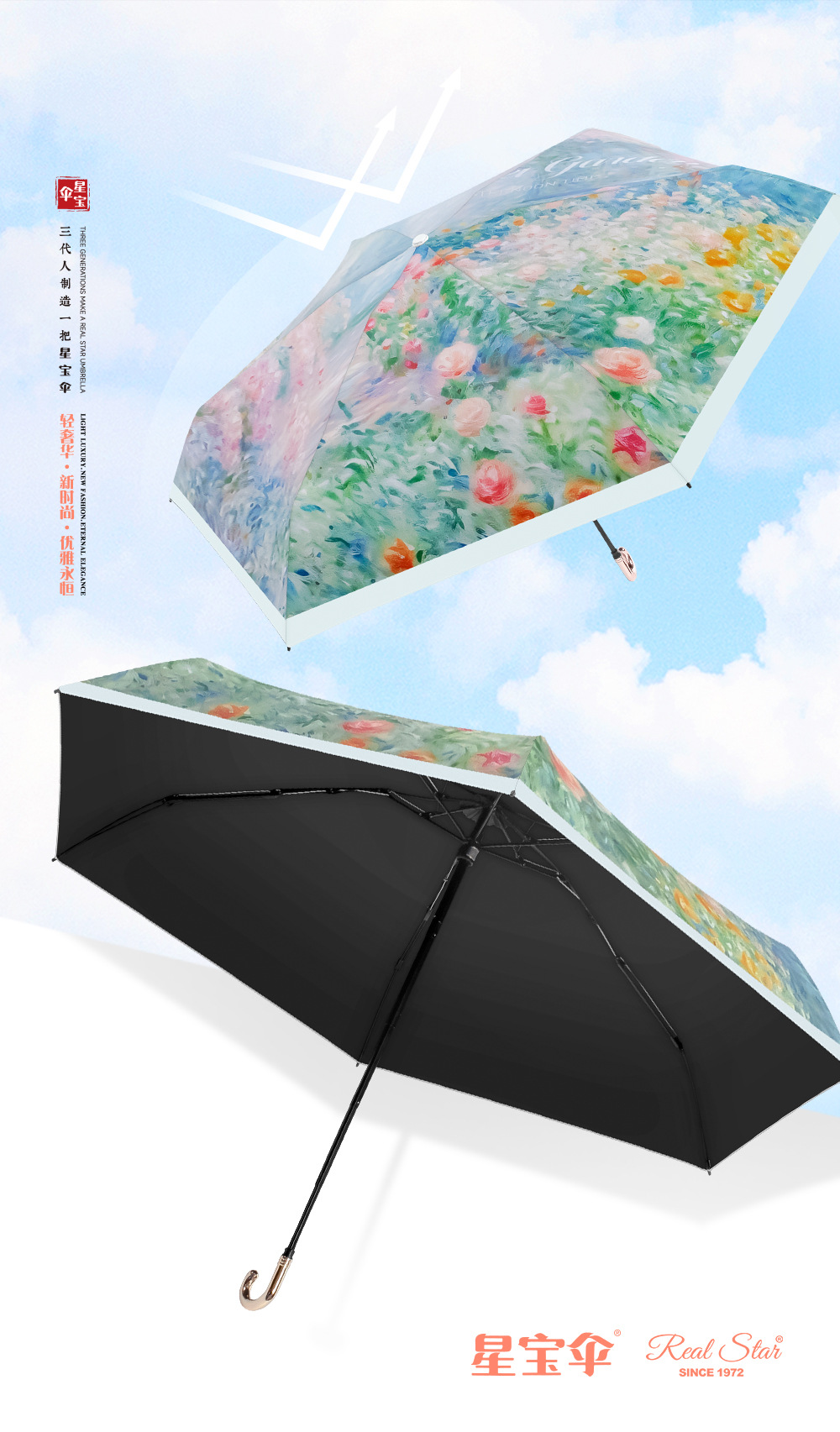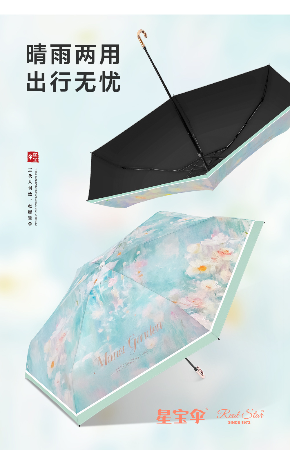 太阳伞高颜值加厚黑胶数码印花防晒伞小巧轻便黑胶遮阳伞五折伞