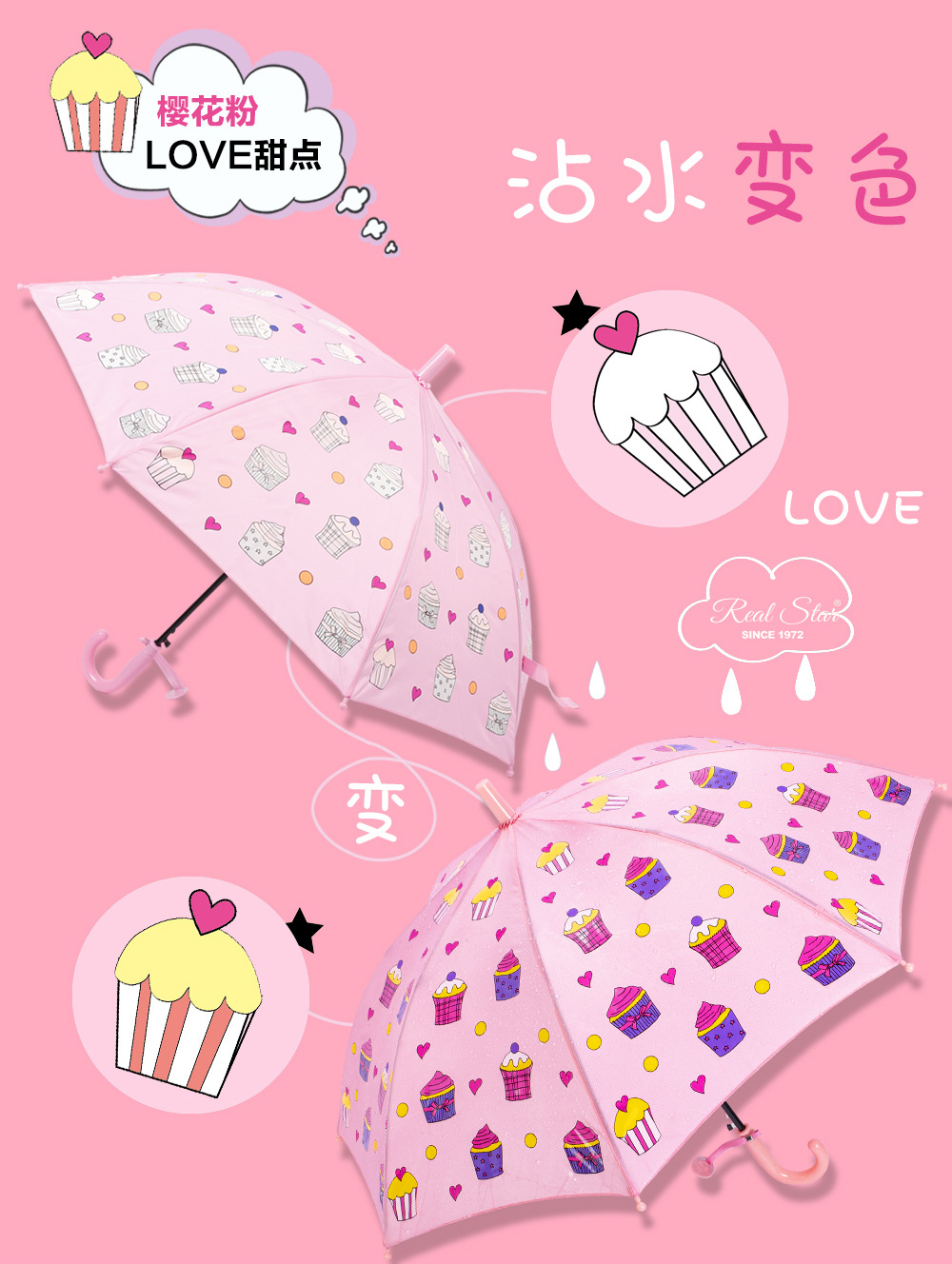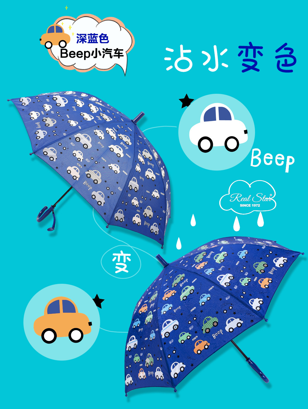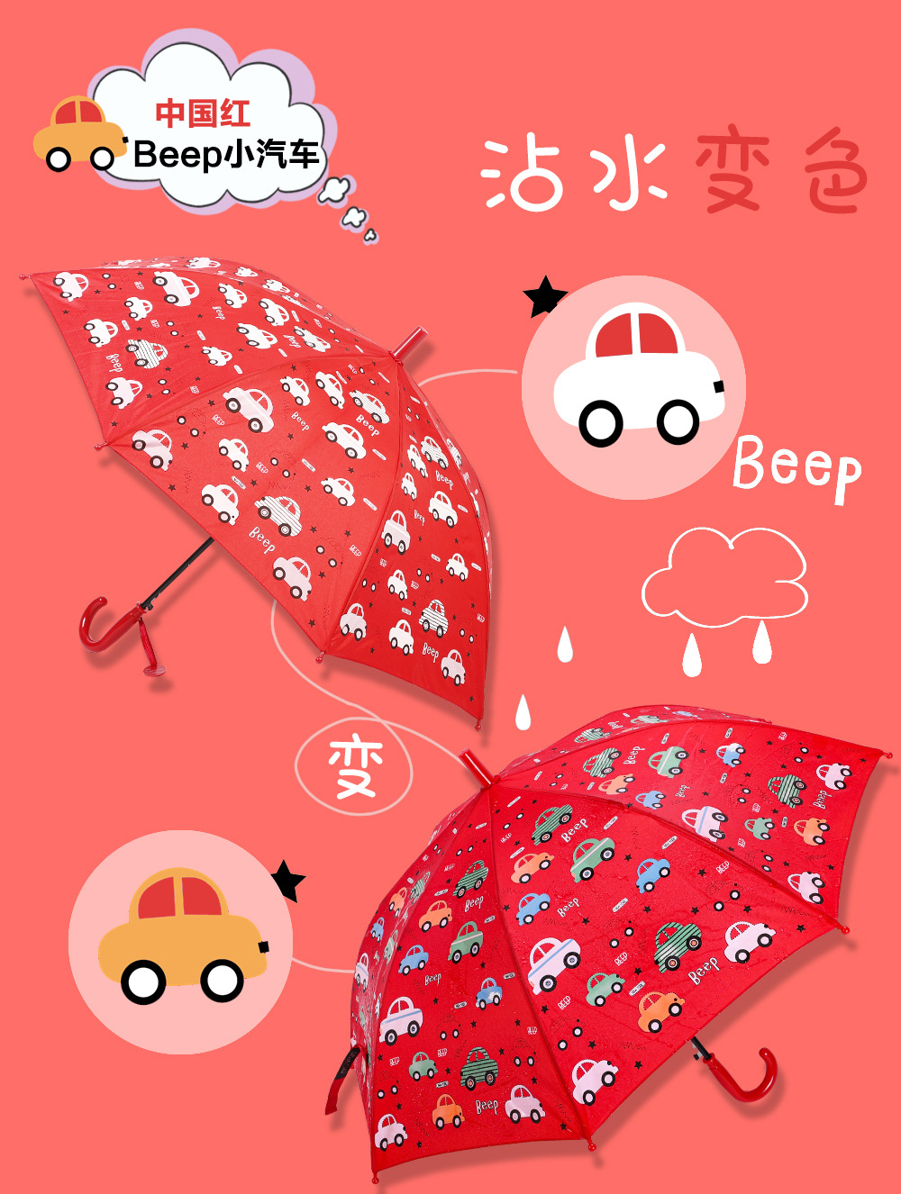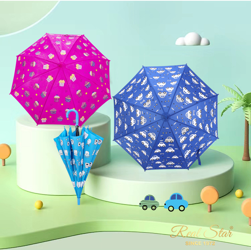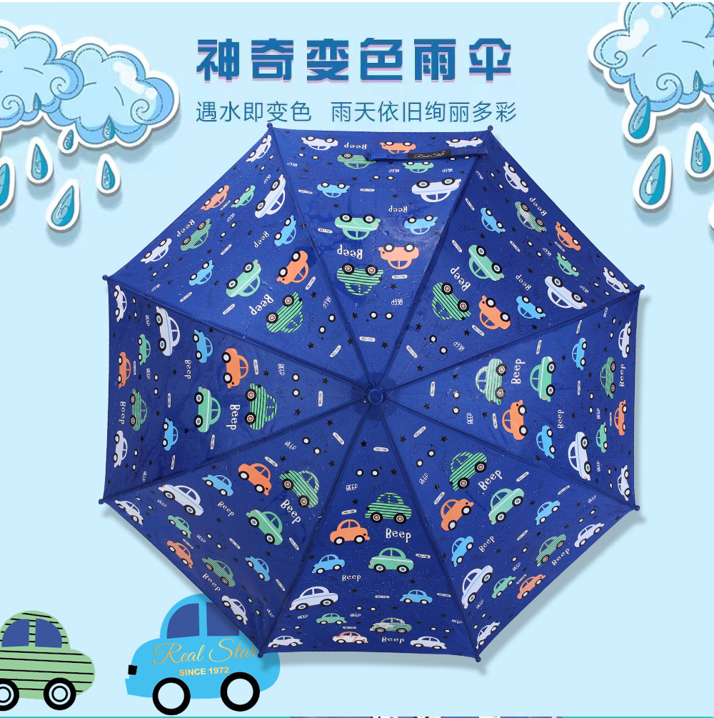 RST批发儿童雨伞小学生幼儿园趣味遇水变色卡通怪兽蛋糕卡车雨伞