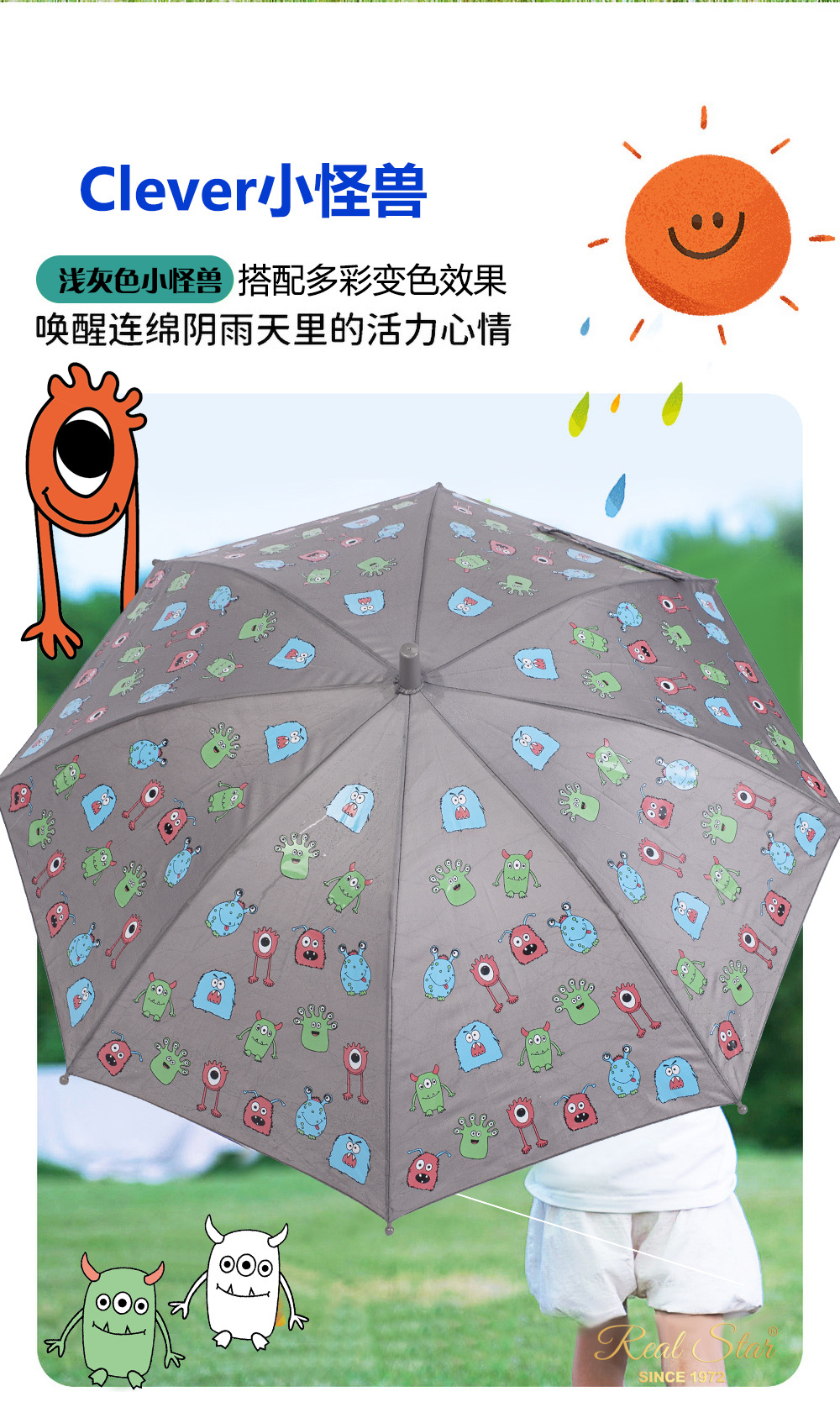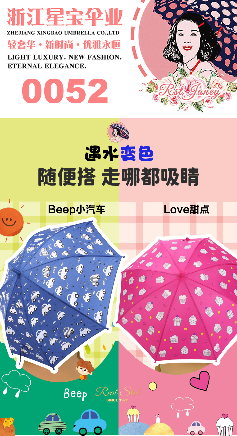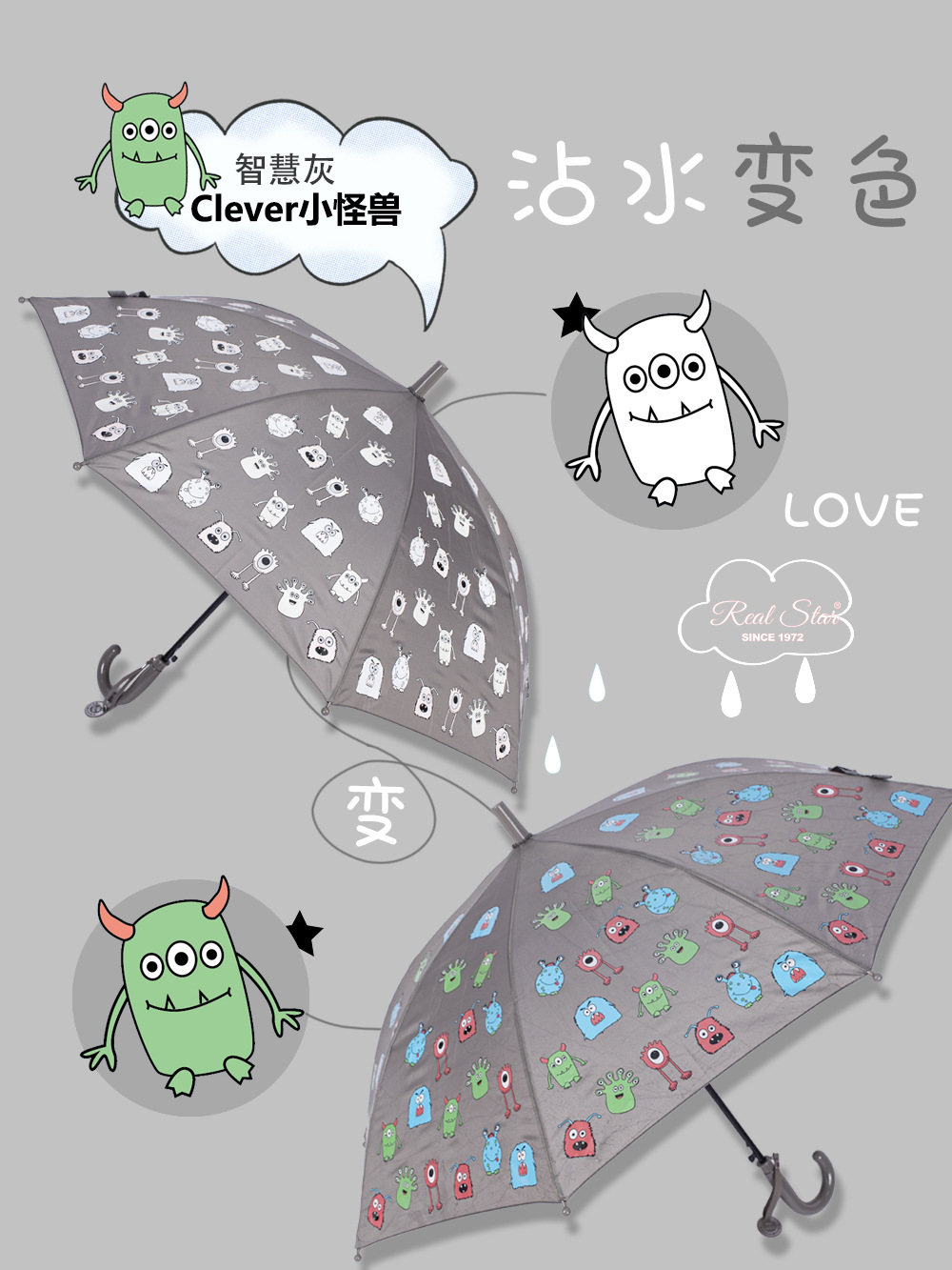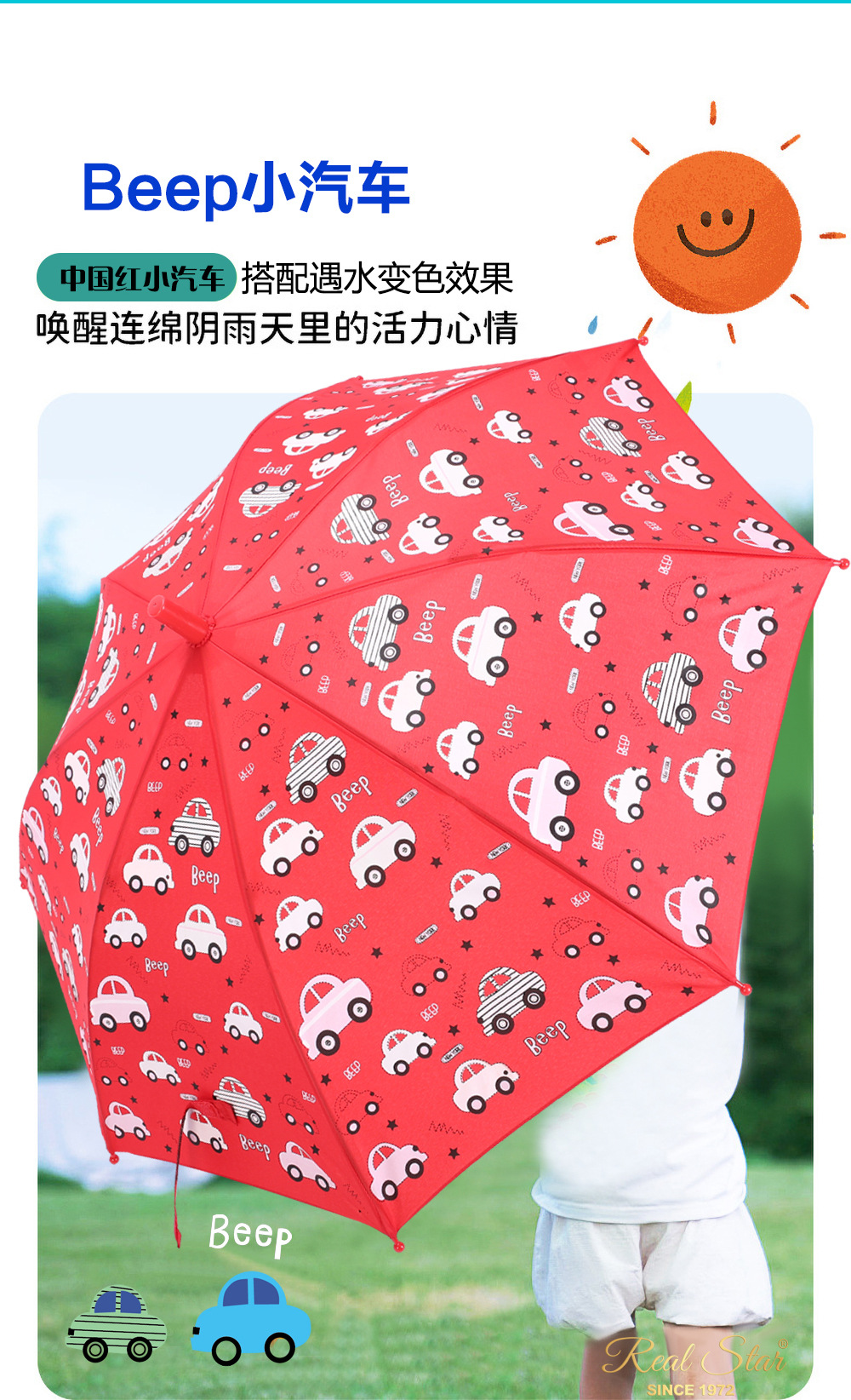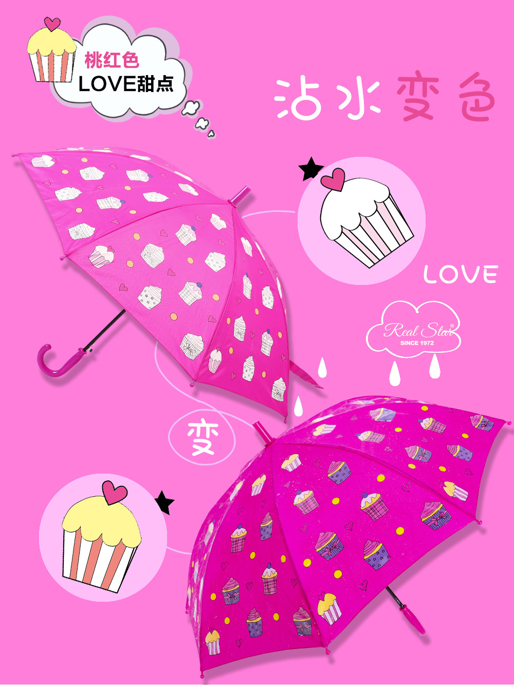 RST批发儿童雨伞小学生幼儿园趣味遇水变色卡通怪兽蛋糕卡车雨伞