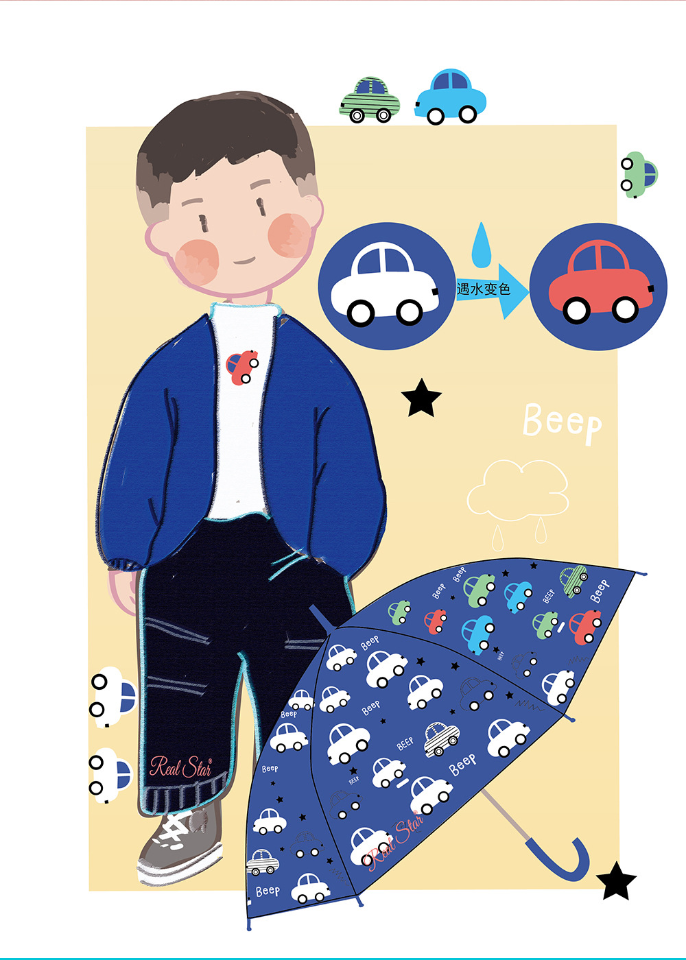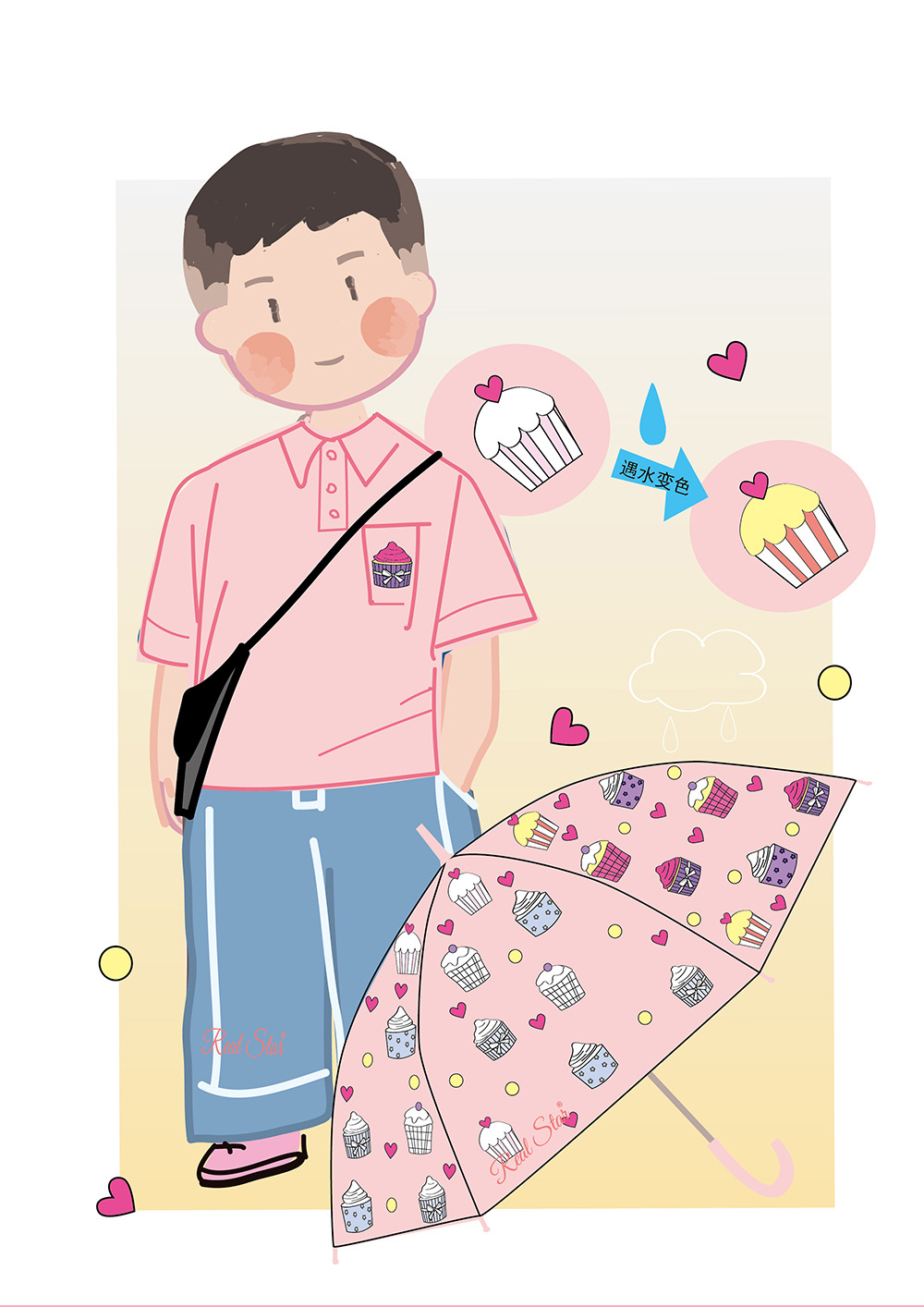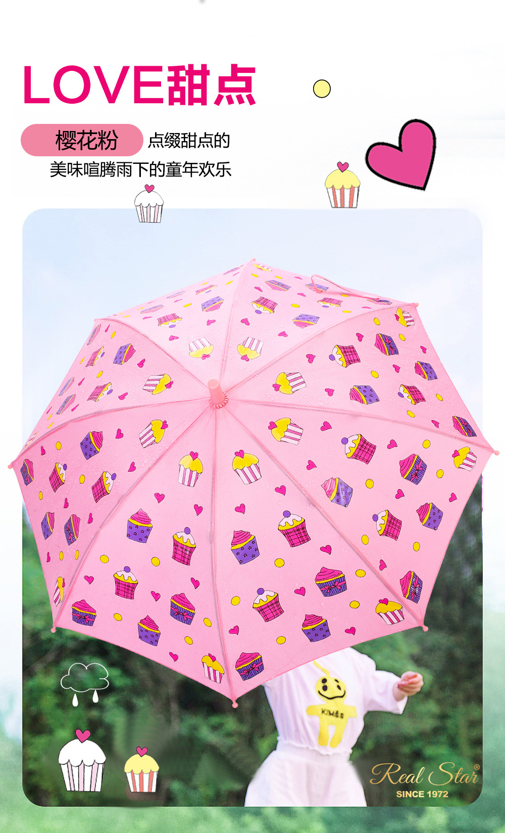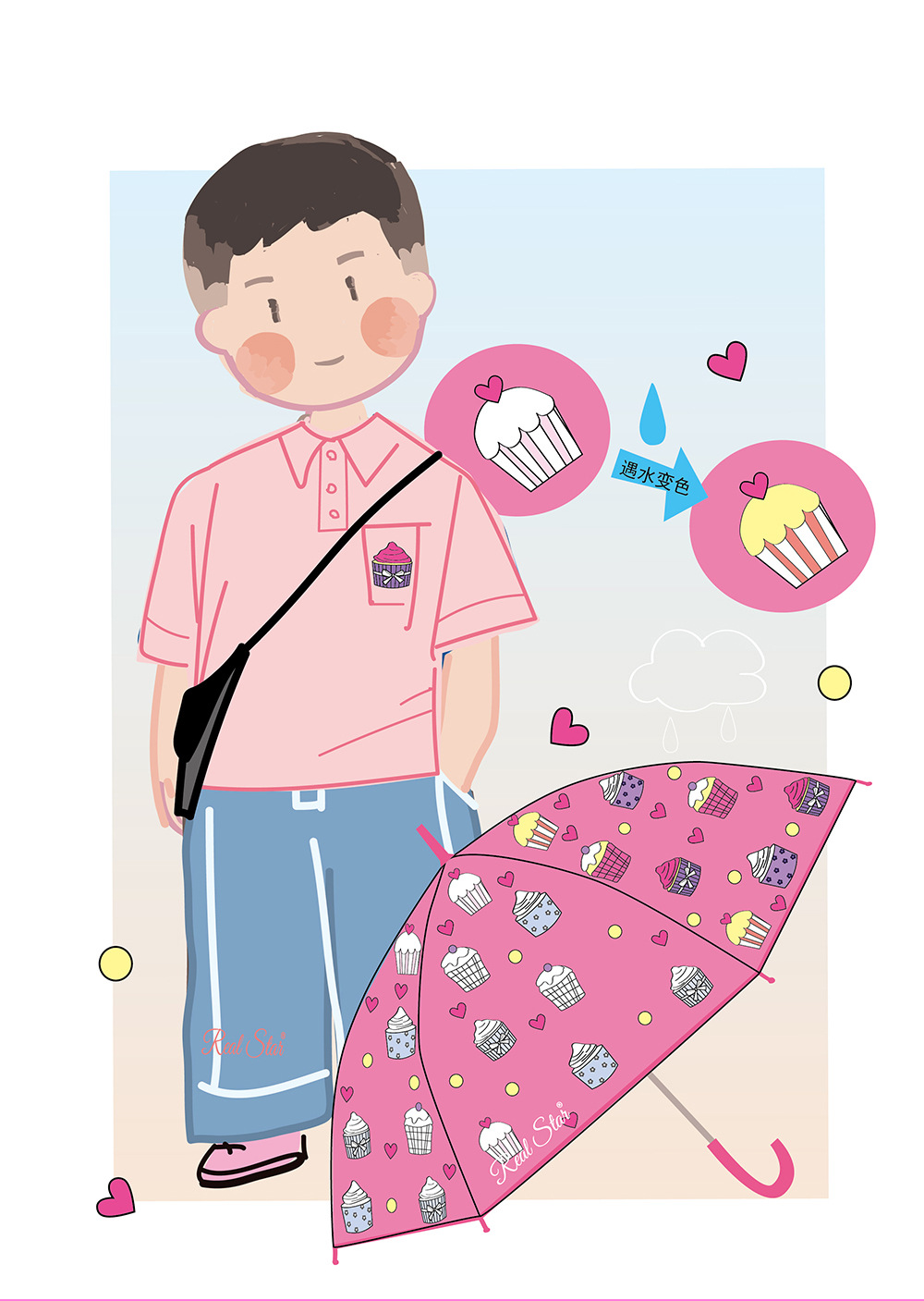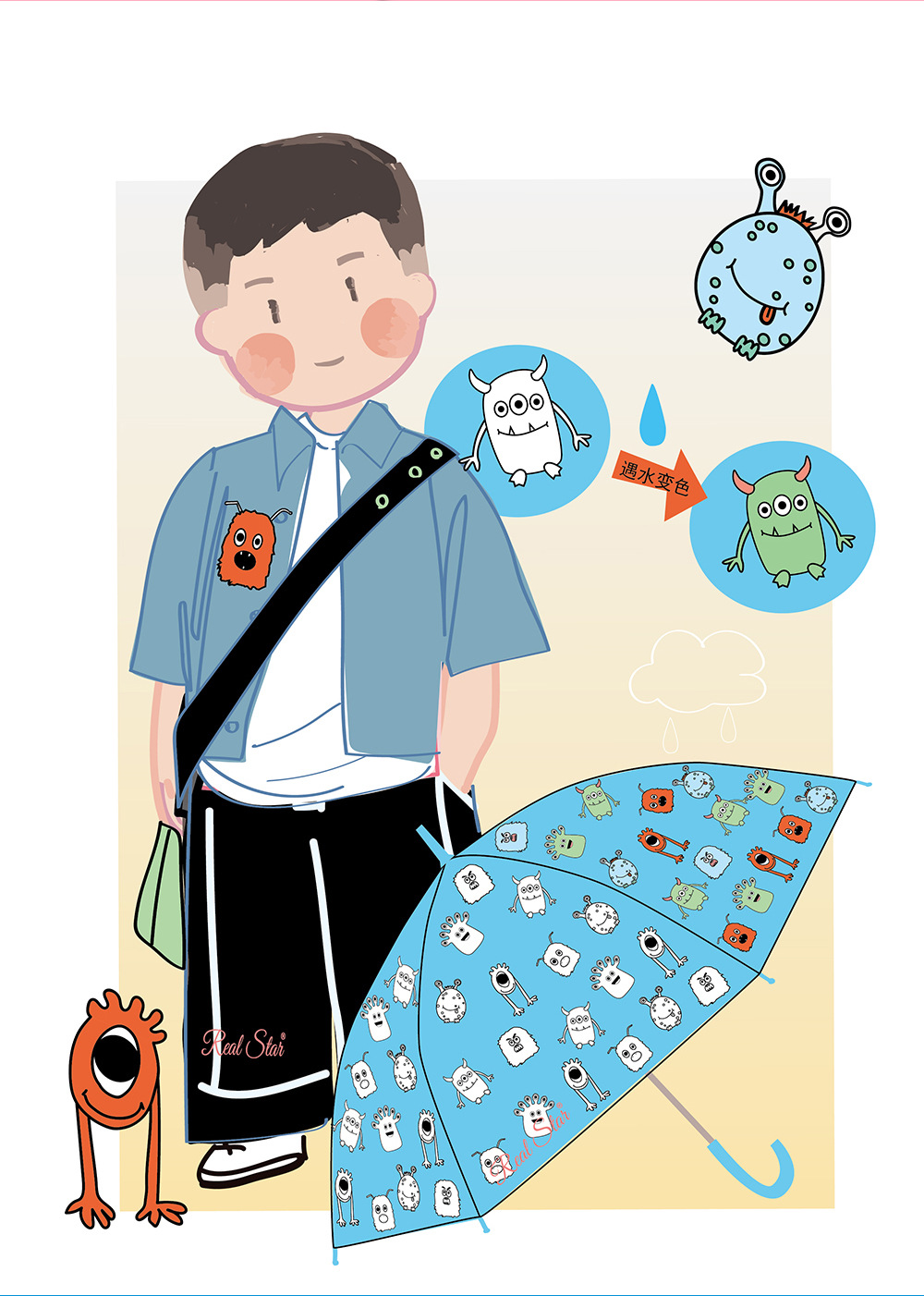 RST批发儿童雨伞小学生幼儿园趣味遇水变色卡通怪兽蛋糕卡车雨伞