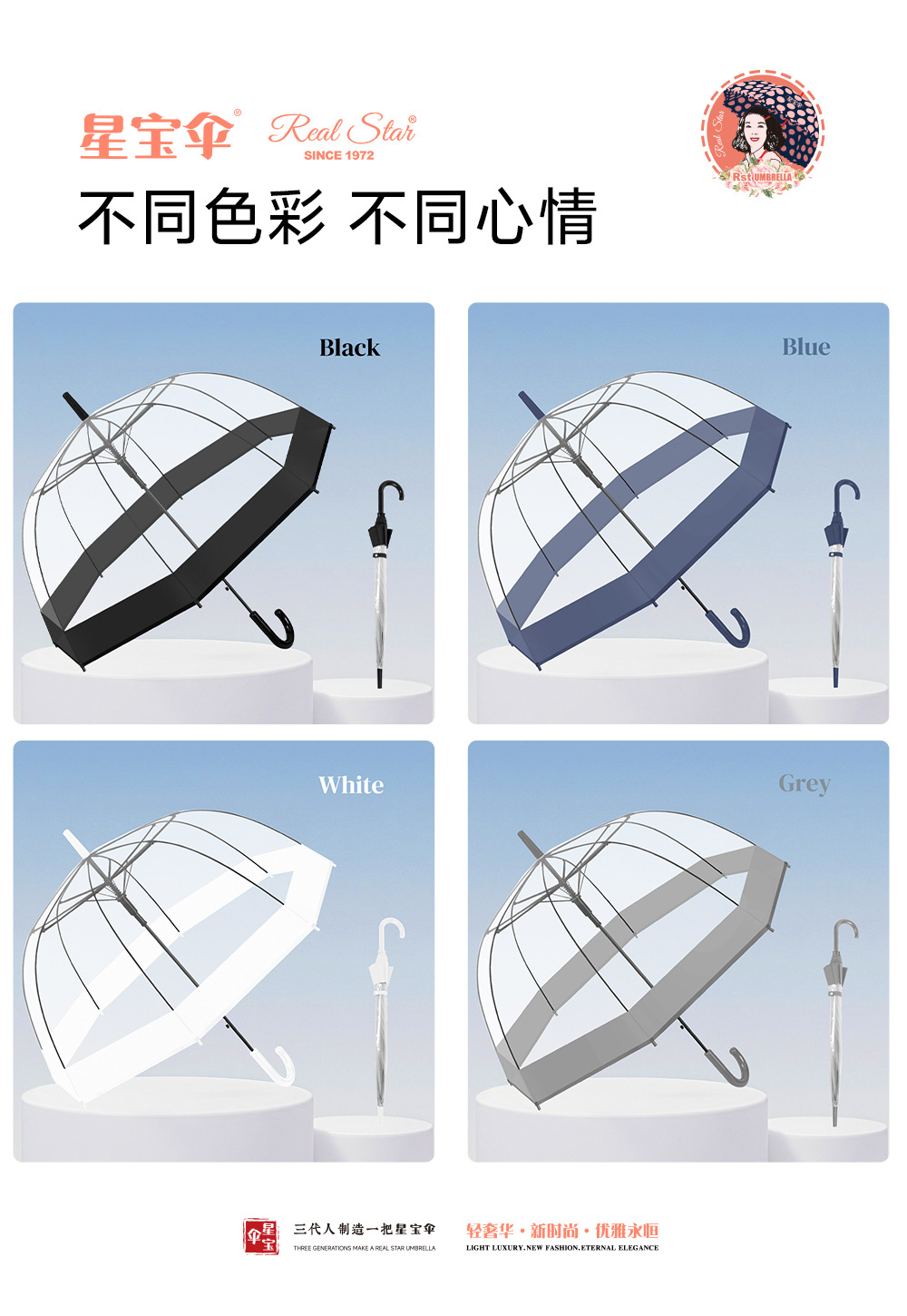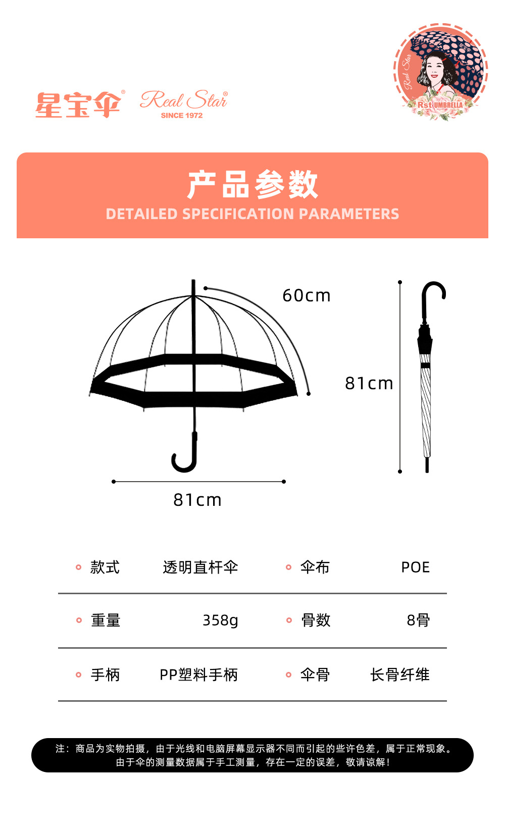 - 伞布材质:透明POE
