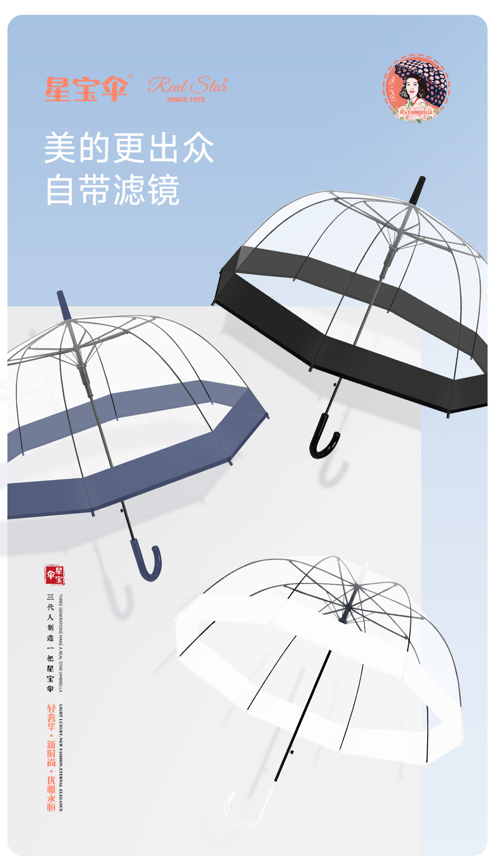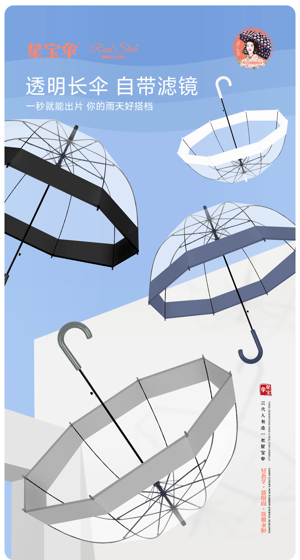 - 流行趋势词:小清新雨伞 透明poe伞