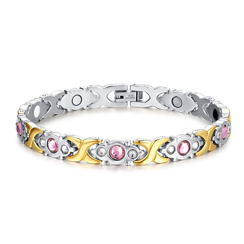 跨境可拆卸交叉镶钻手链欧美时尚男士磁石饰品环保合金手镯磁吸