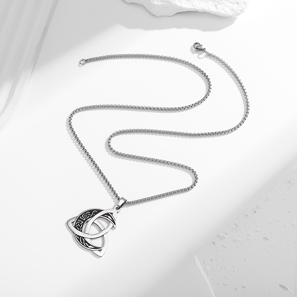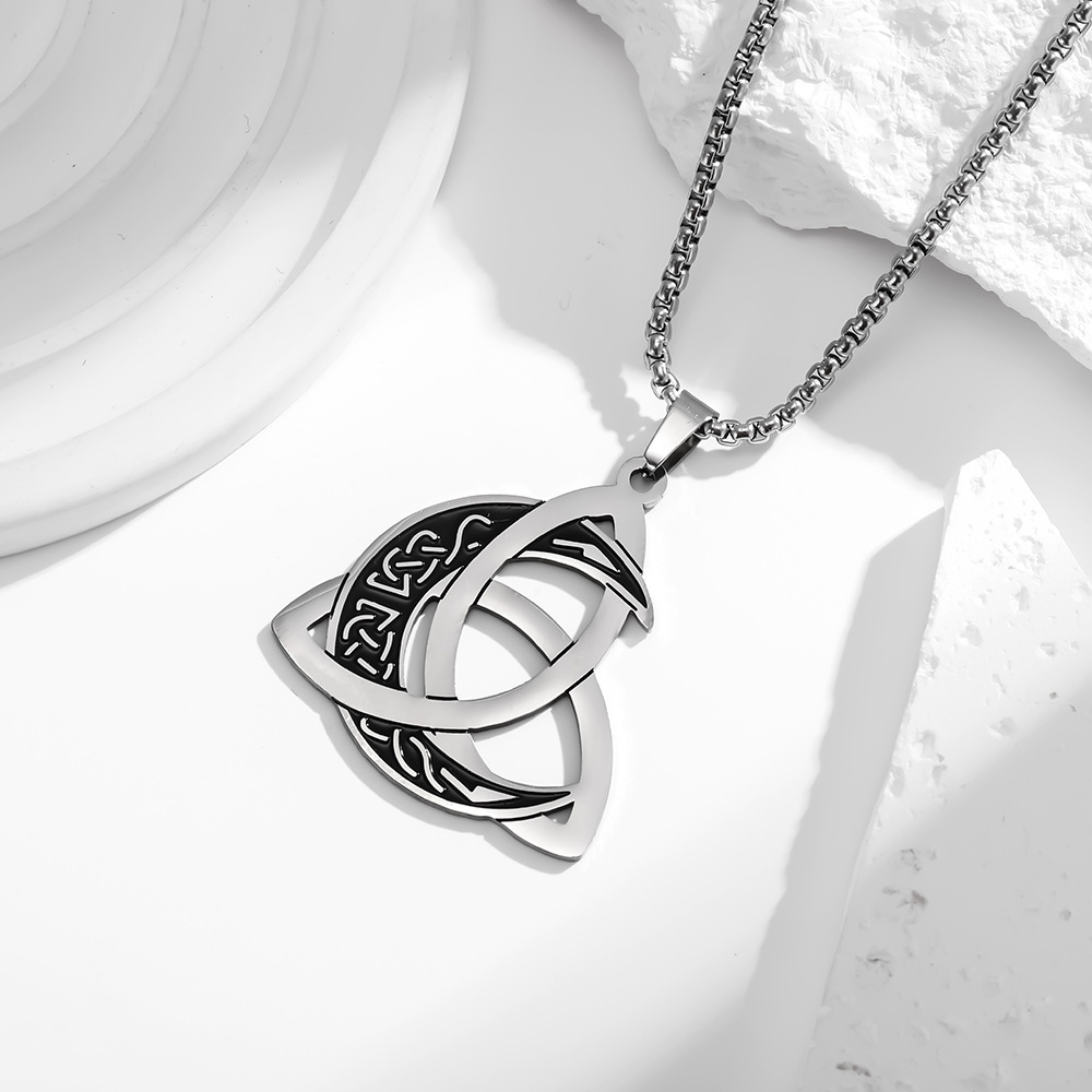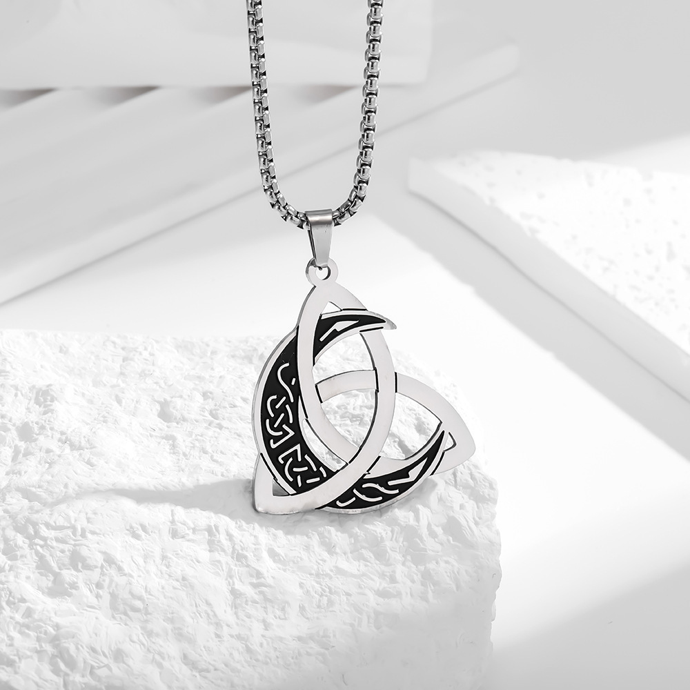 跨境维京三角结月相环绕吊坠凯尔特结不锈钢复古风格钛钢项链批发