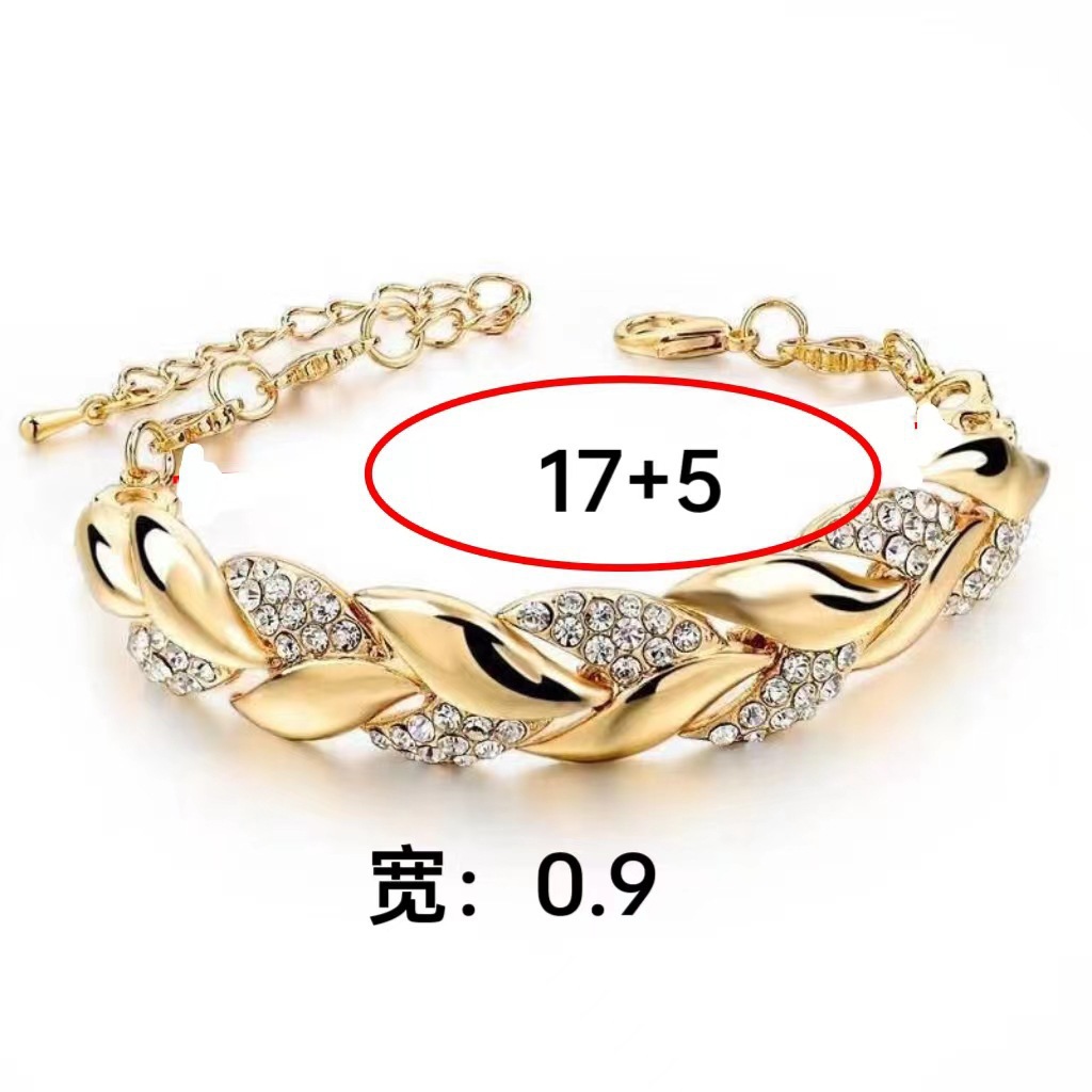 跨境饰品18K金色树叶手链 欧美时尚婚礼珠宝女性镶钻手链饰品批发