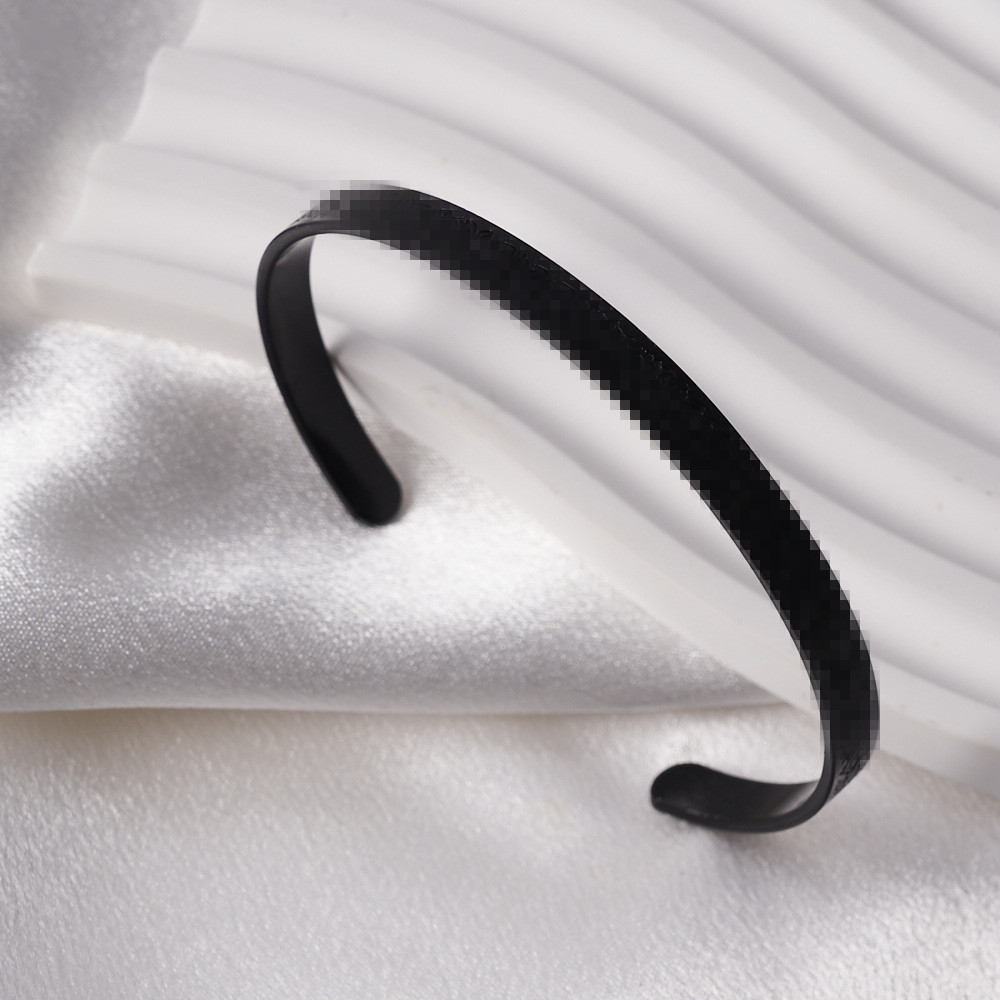 星栖6mm跨境符文手镯小众个性百搭不锈钢C型开口女士手镯饰品批发