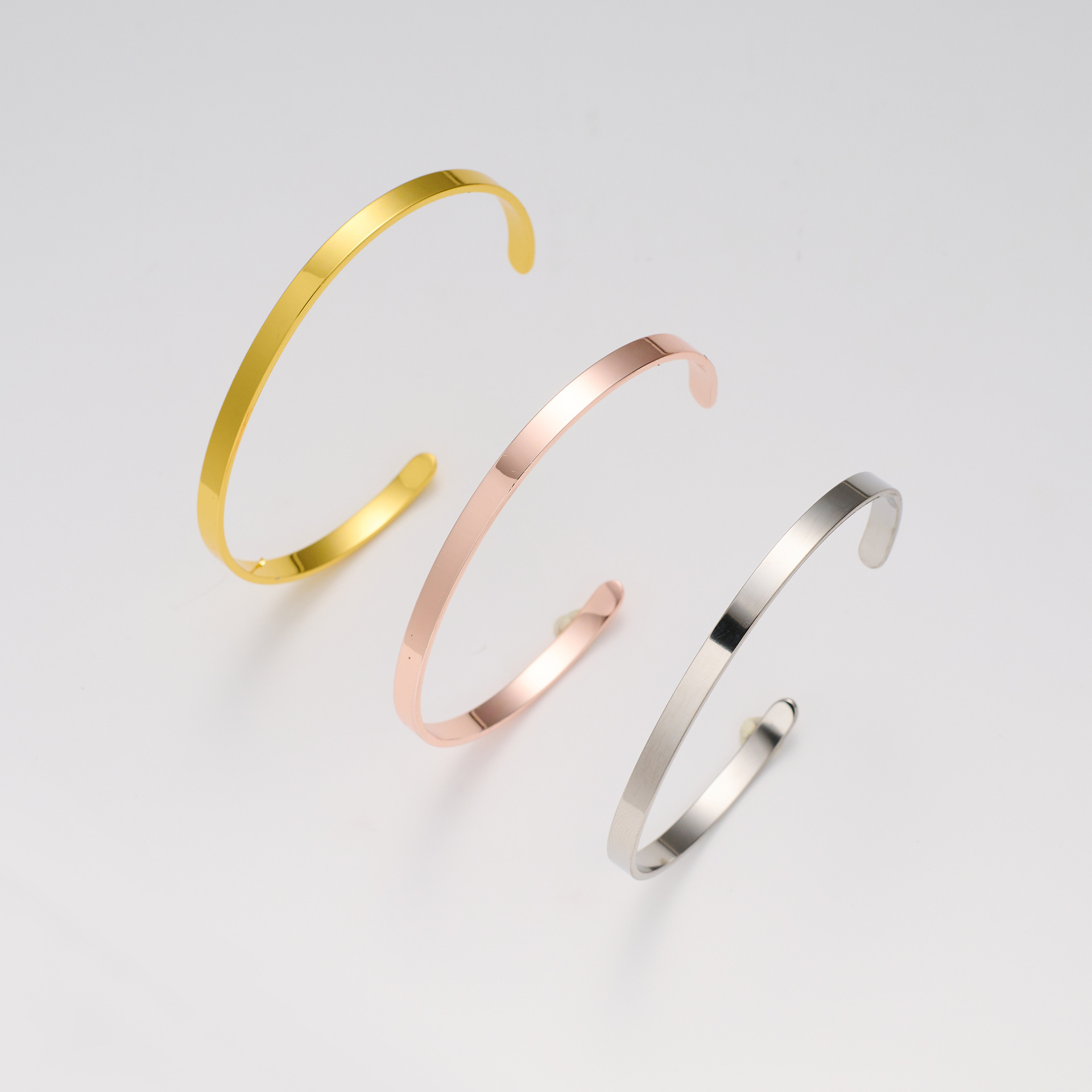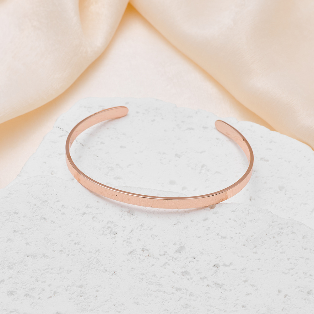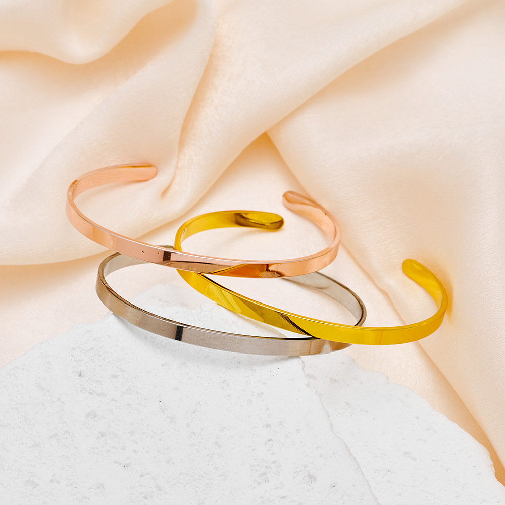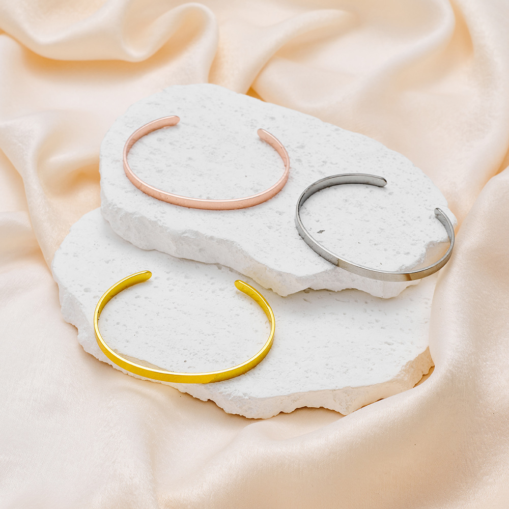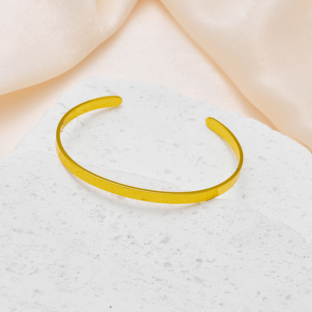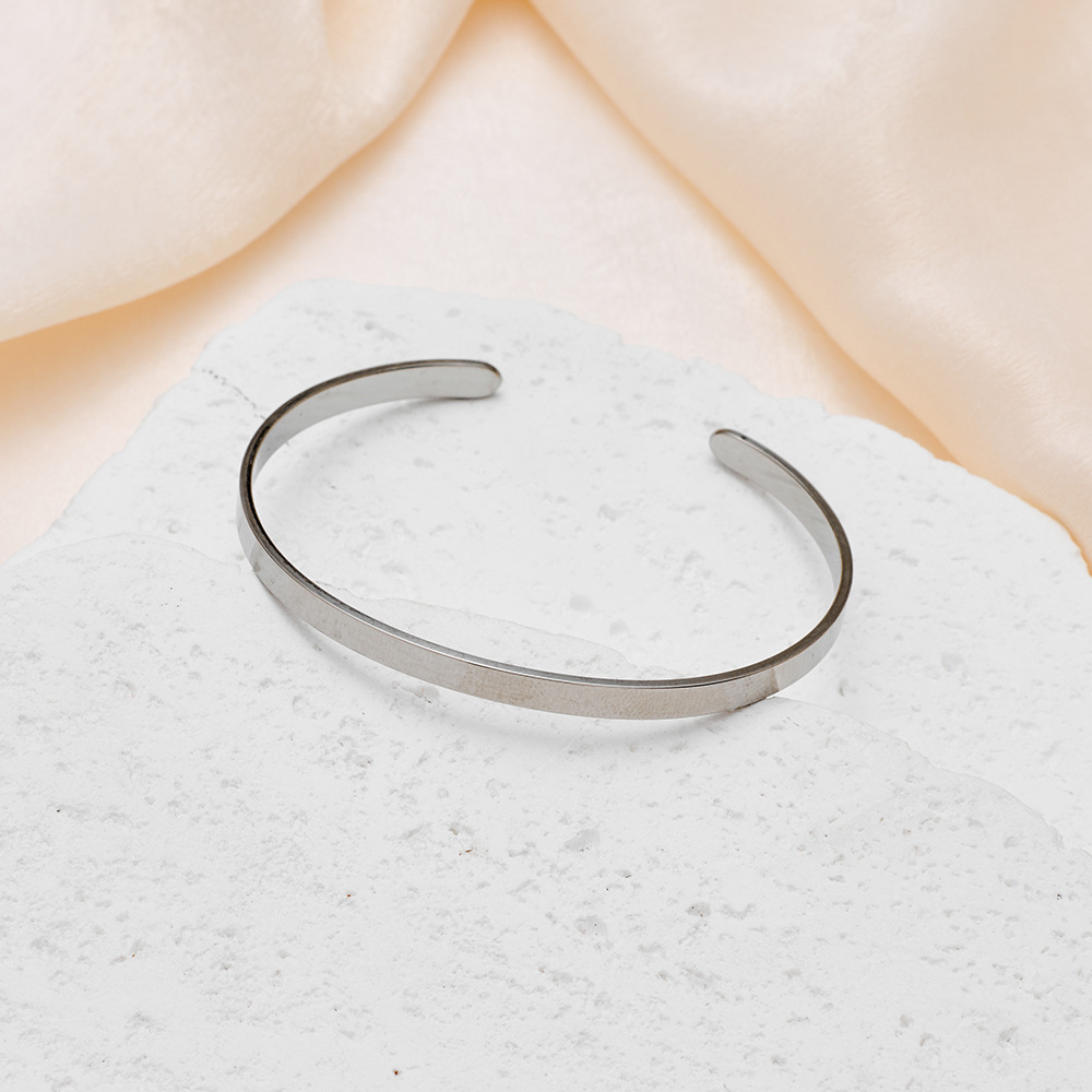 欧美光面钛钢长条开口不锈钢C形手镯可 LOGO刻字手环手镯批发