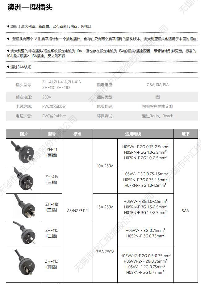 澳大利亚SAA RCM认证 10A 250V 2芯 I型澳标插头电源线