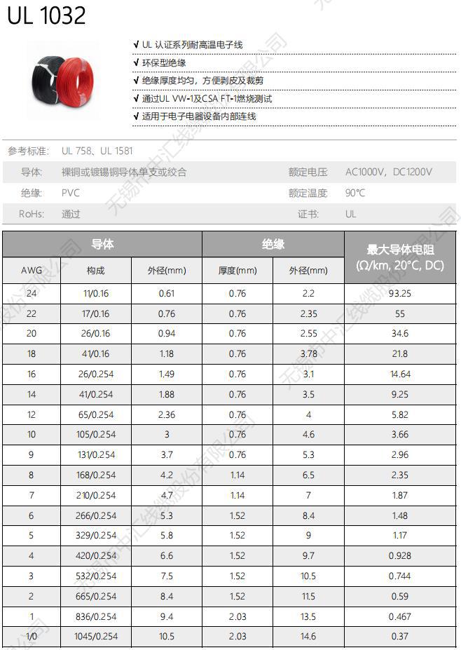 美标UL1032PVC电子线批发镀锡铜单芯阻燃电源线电线缆耐高温电线
