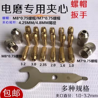 小电磨专用夹头夹心螺帽三爪迷你多功能钻夹头电磨机黄铜头锁帽