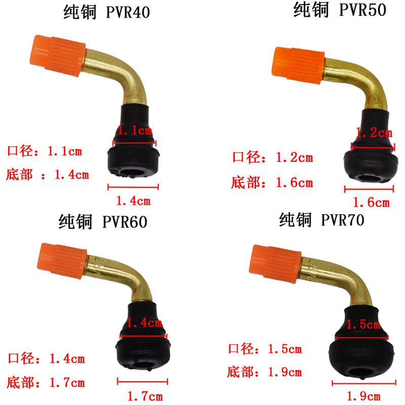电动两轮三轮车气嘴真空胎弯纯铜PVR40/50/60/70胎嘴防爆供应电摩