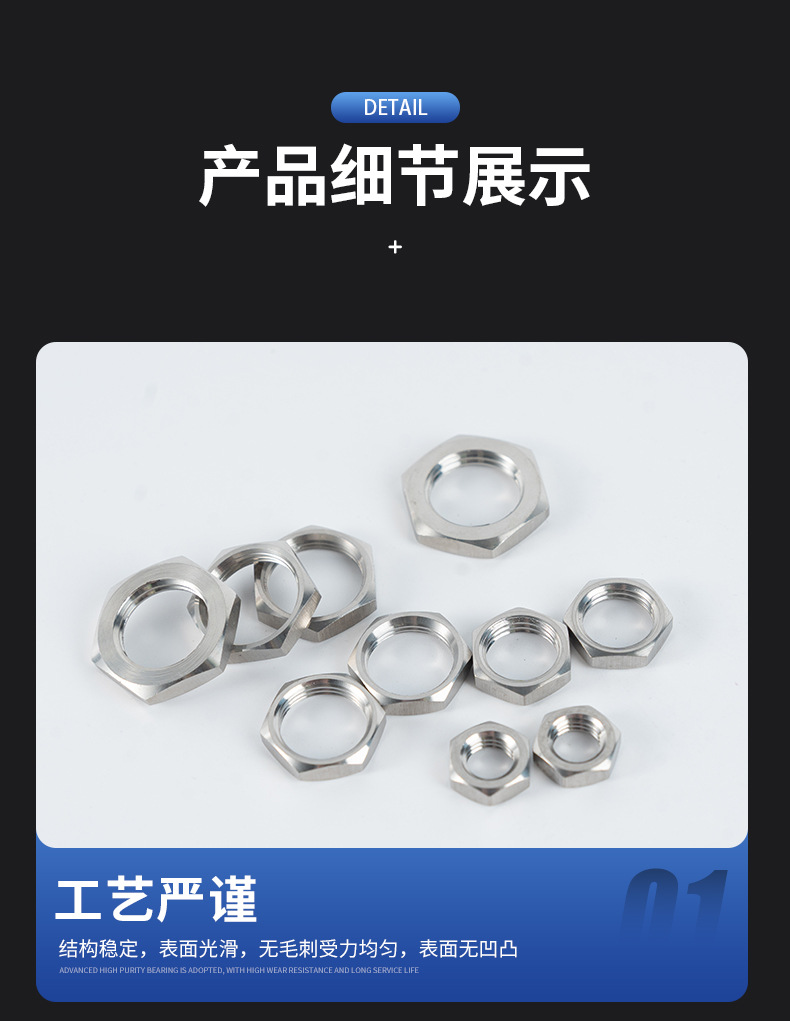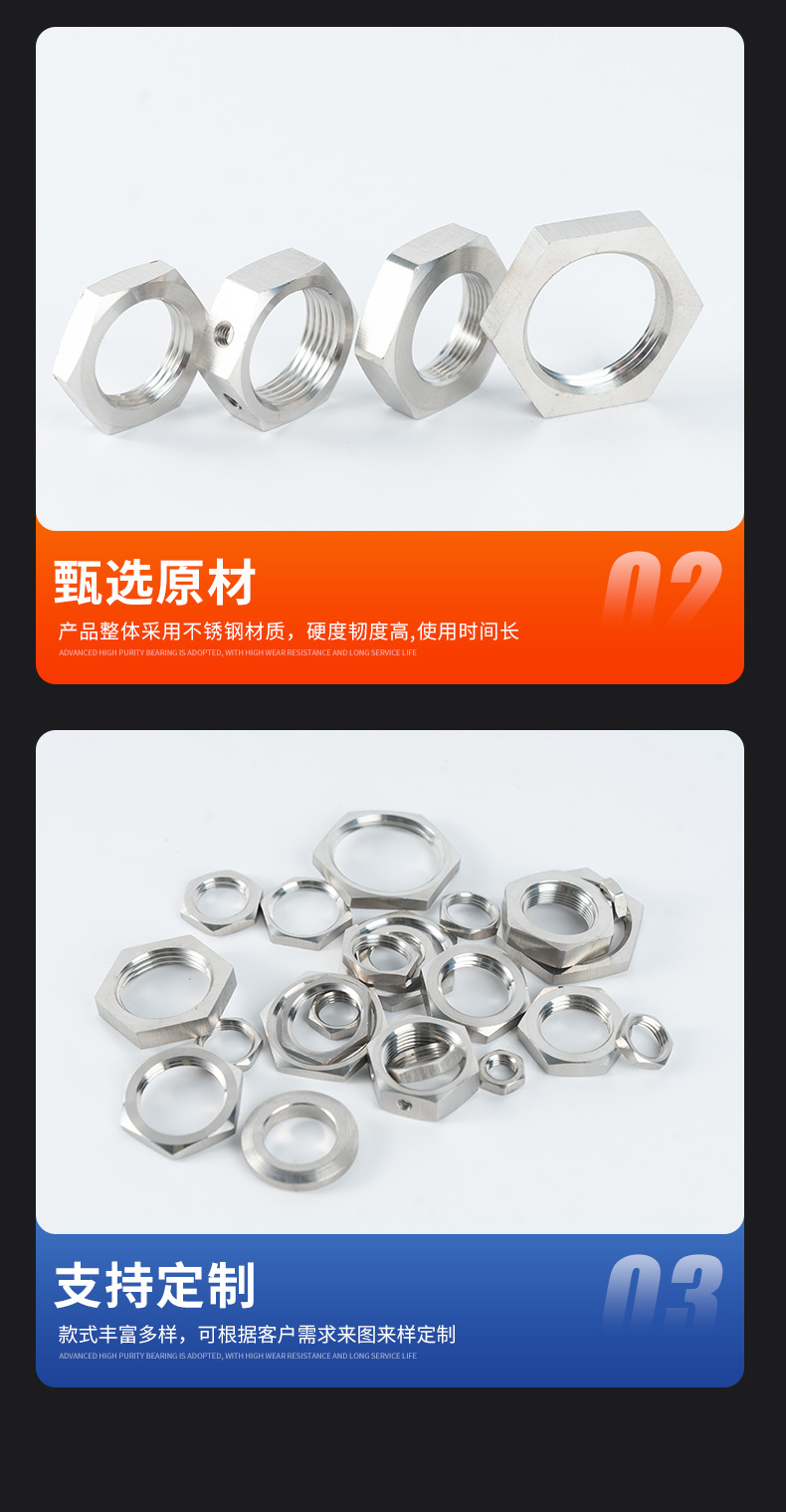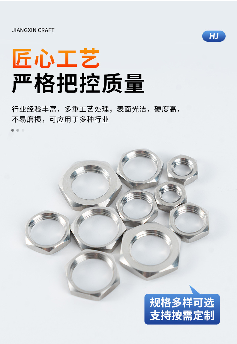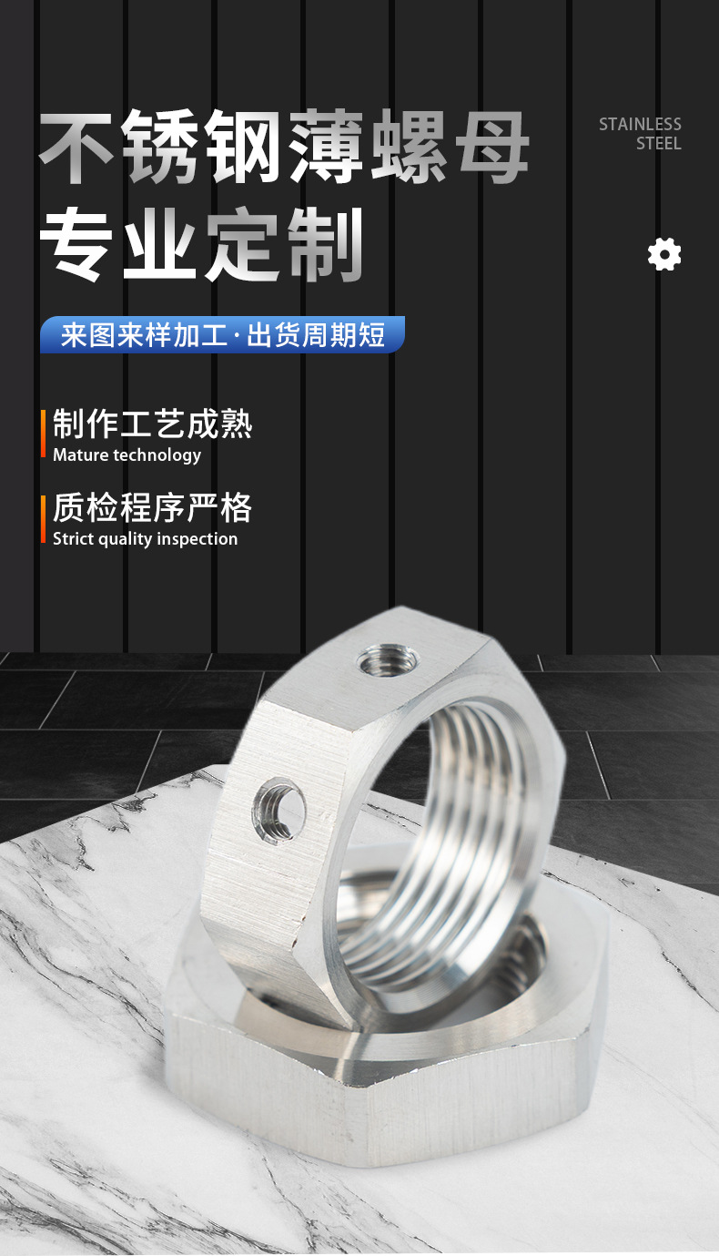 304不锈钢薄螺母316六角薄款扁型标准牙螺丝锁紧螺丝帽M8M10M12