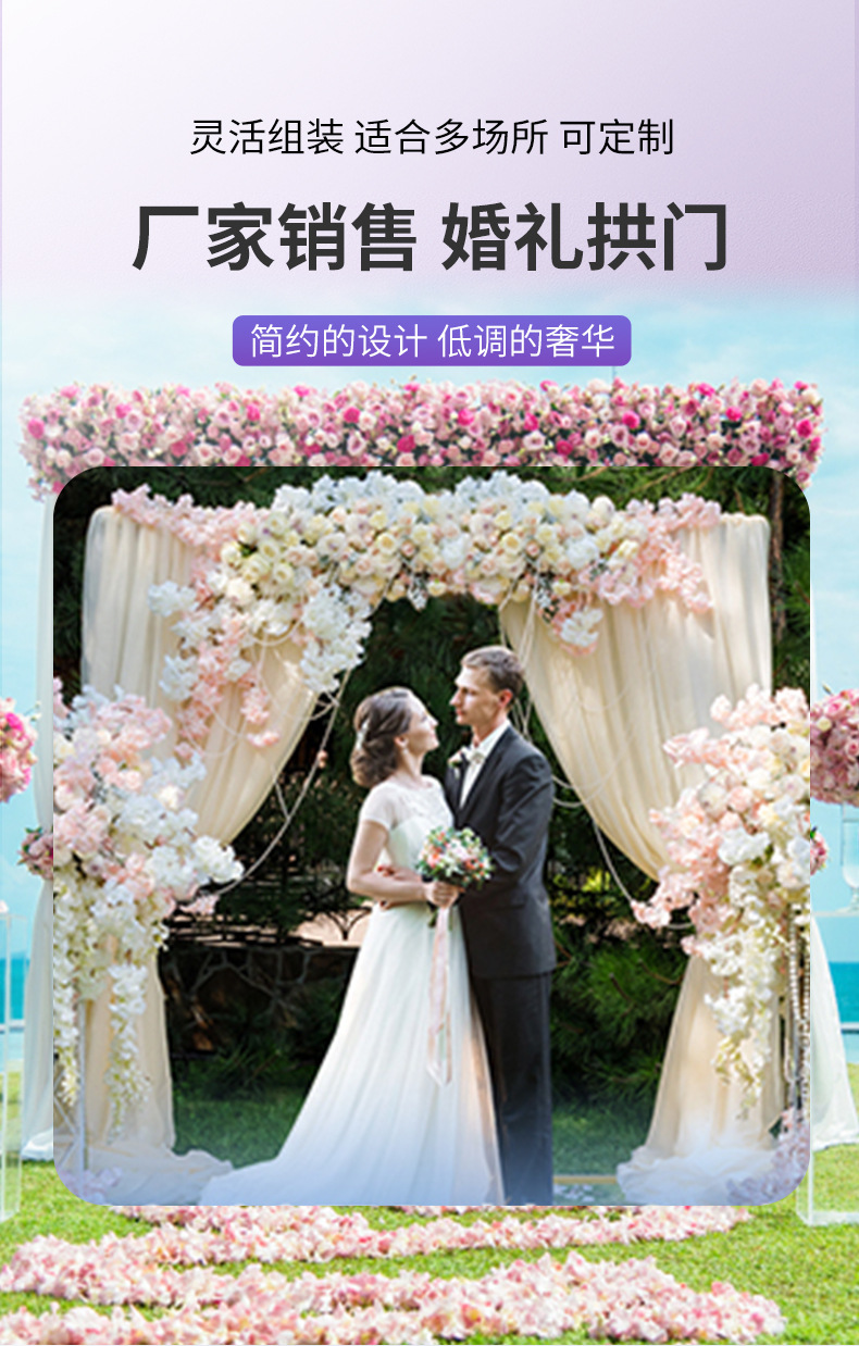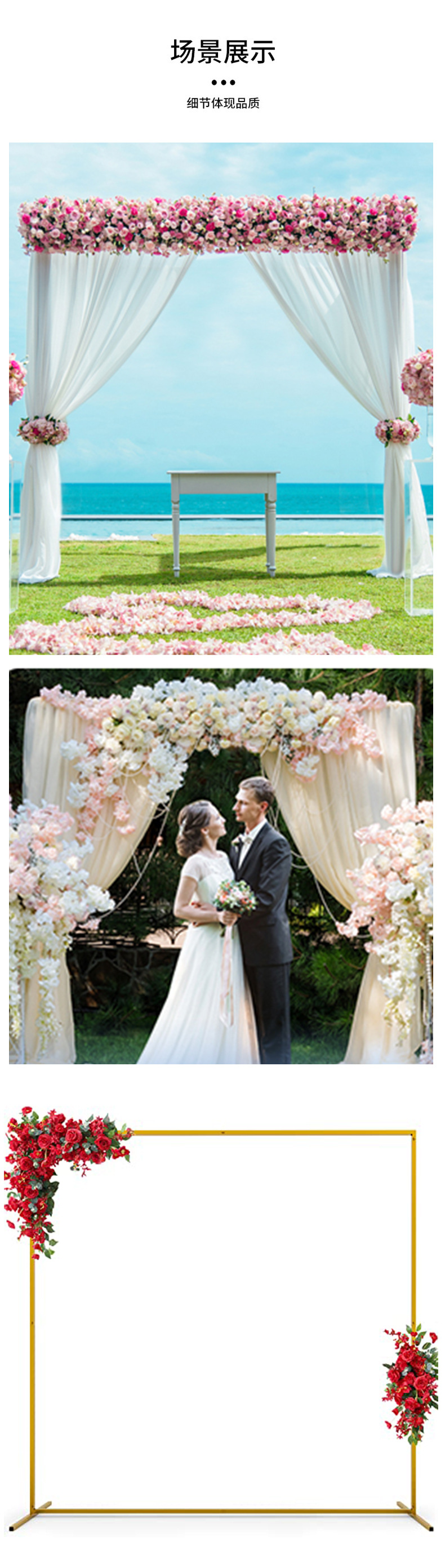 婚庆道具舞台背景架背景铁艺装饰花架支架金色婚礼方形拱门架子