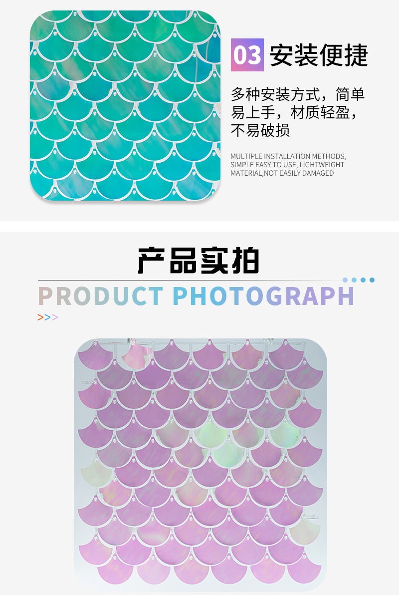 风动扣板生日派对婚庆节日庆典装饰背景亮片S扇形风动扣板背景墙