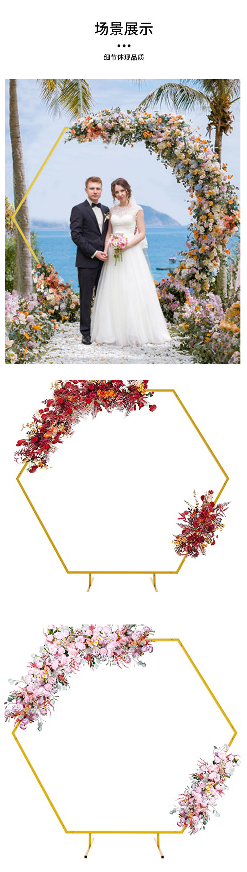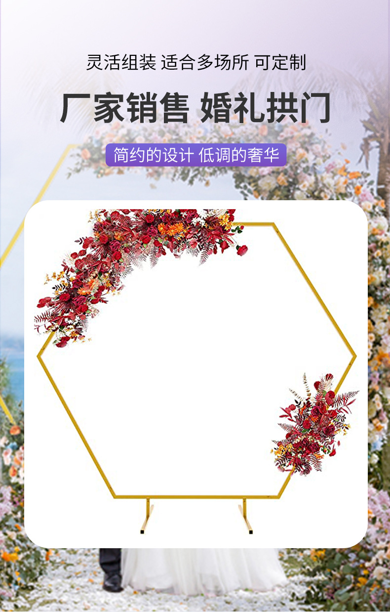 婚庆支架道具几何六边形铁艺拱门架子背景装饰森系婚礼布置舞台架