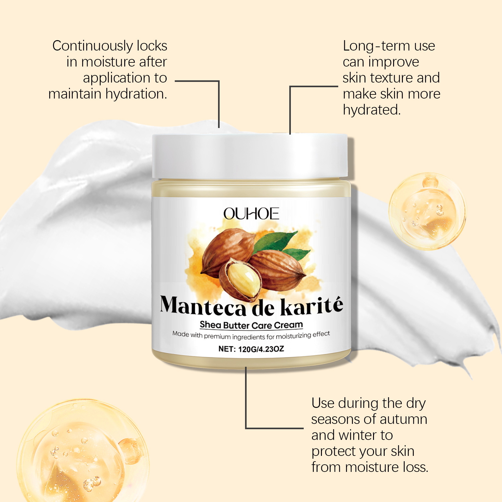 OUHOE 多效保湿护理霜 面部全身可用润肤护唇含甘油乳木果油维E霜