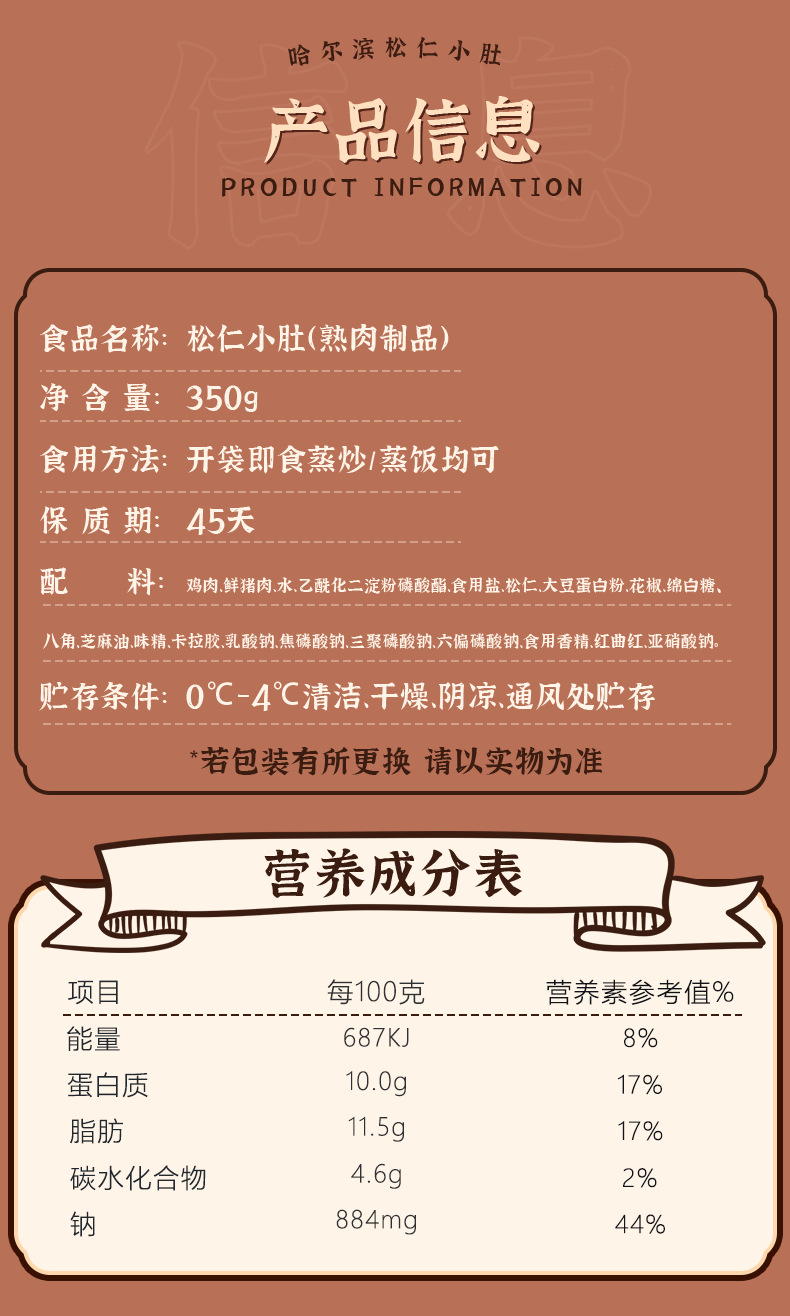 - 包装规格:松仁小肚350g