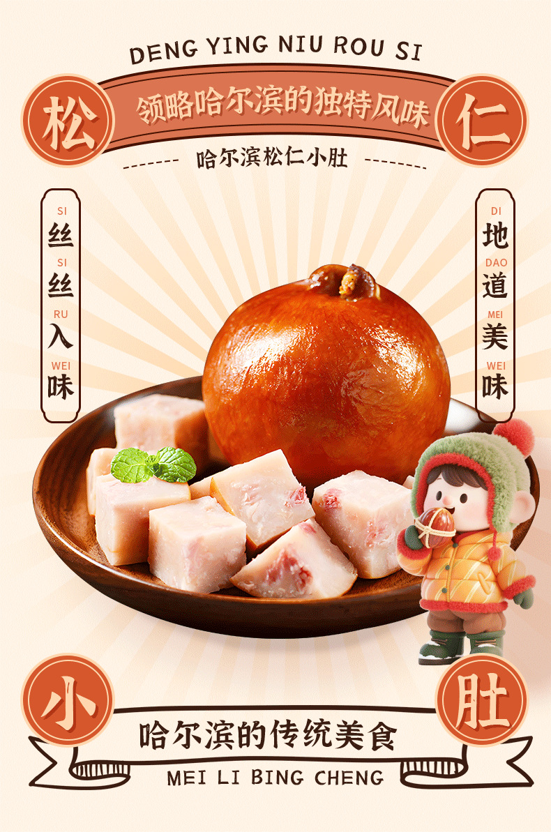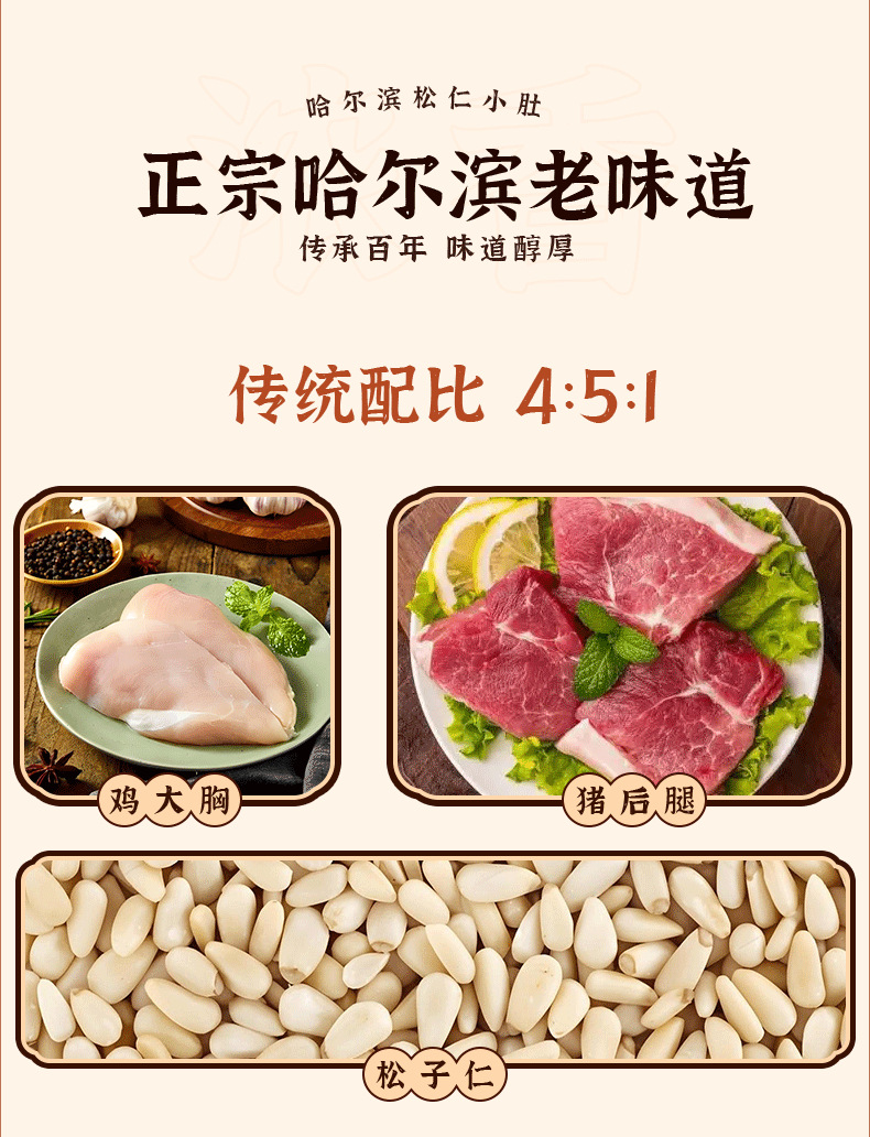 哈尔滨风味松仁小肚老式肉肚五香松花火腿熟食真空开袋即食下酒菜