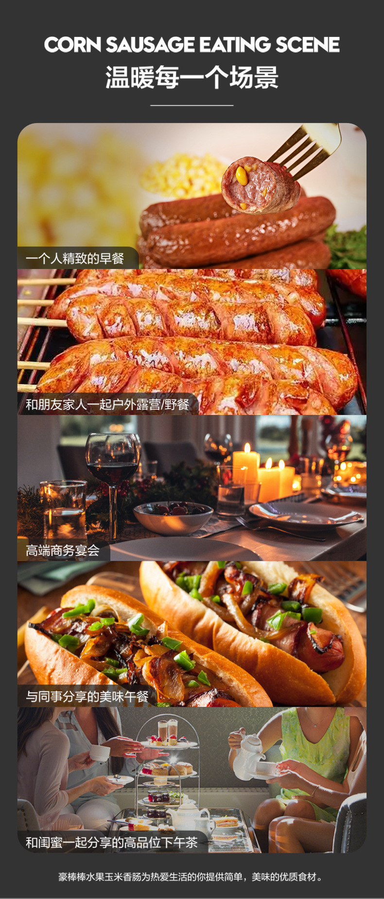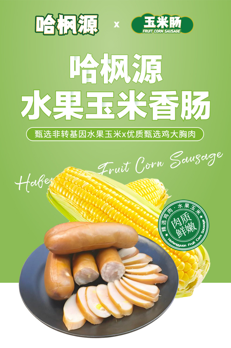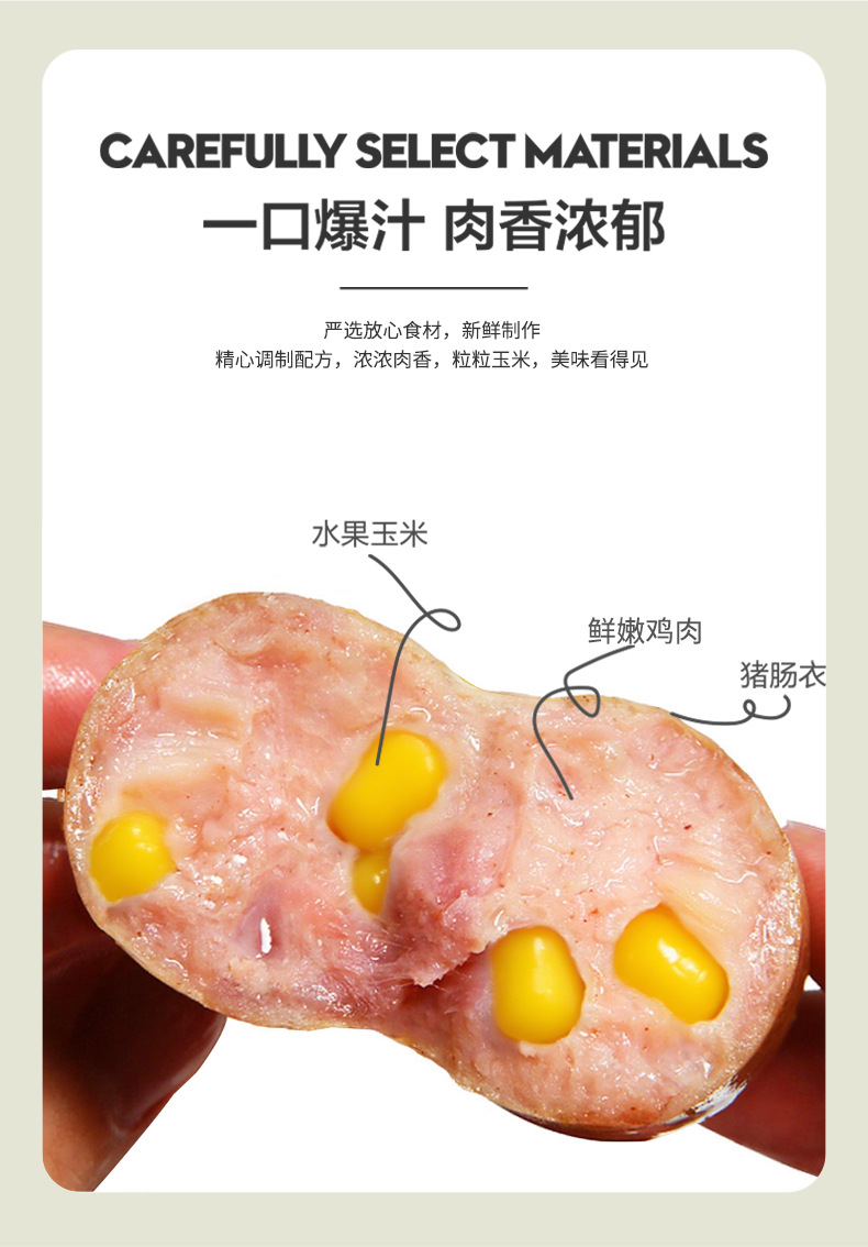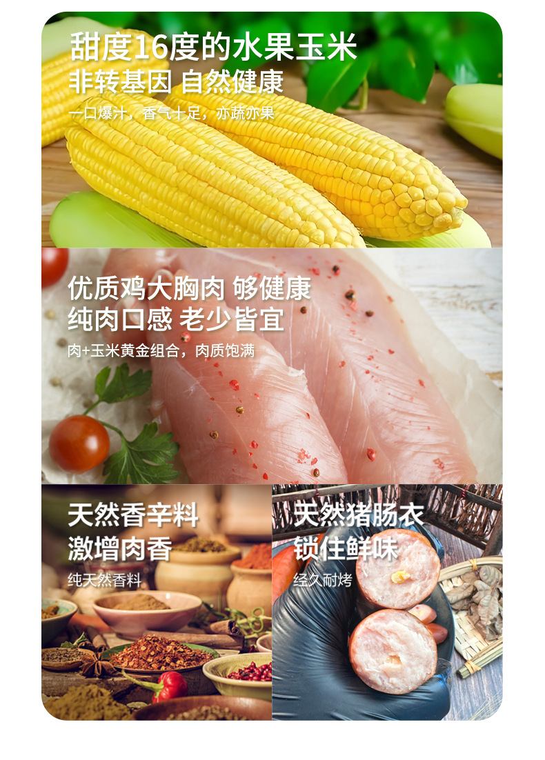 儿童零食膳食鸡肉热狗肠果木熏烤烧烤食材火腿香肠玉米味脆皮烤肠