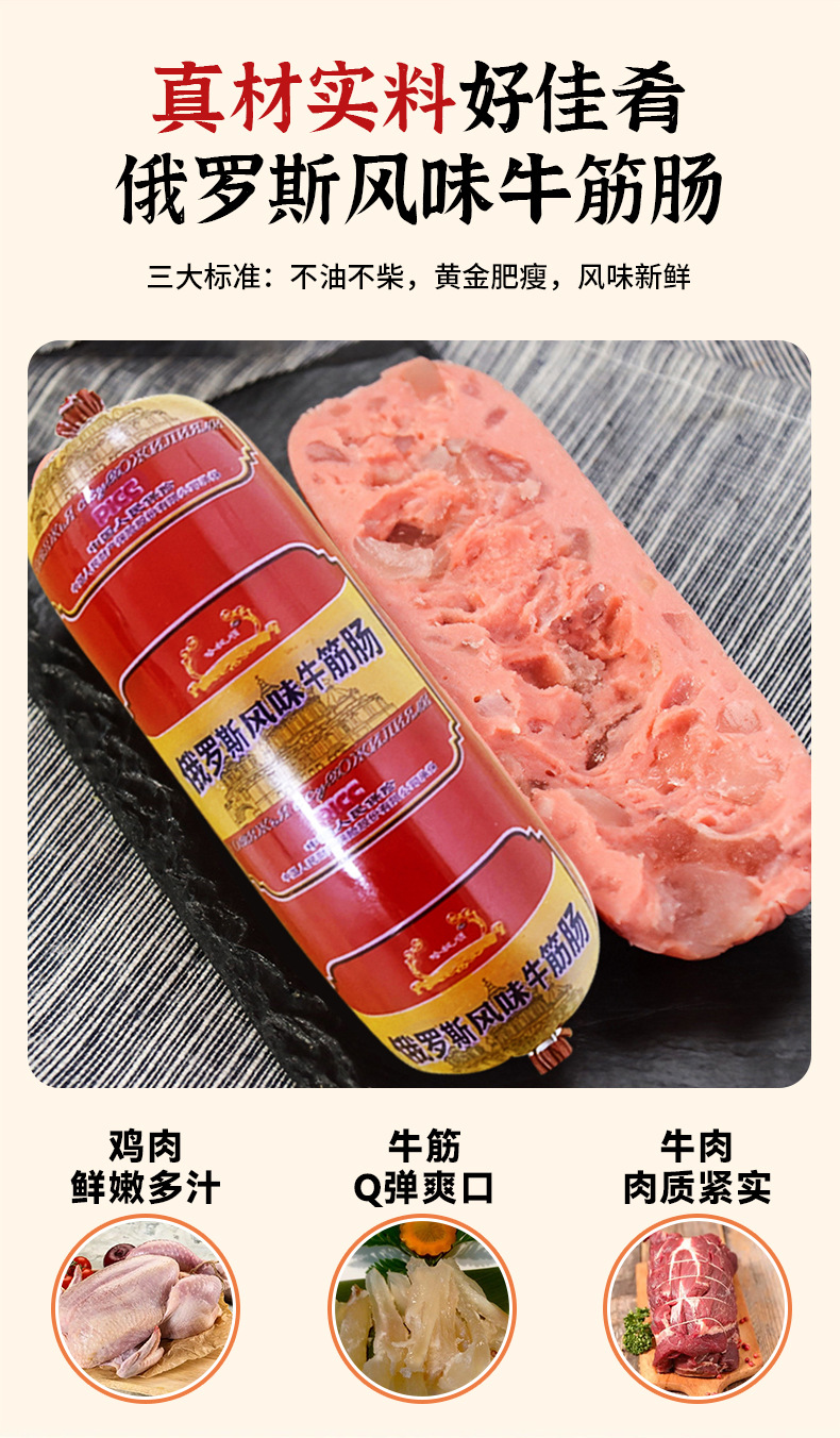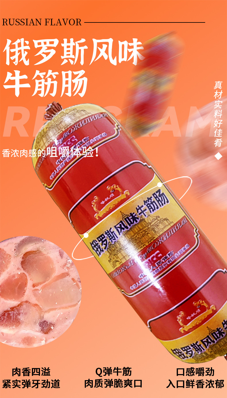 俄罗斯风味香肠贴牌定制牛筋肠俄式大肉熟食即食下酒菜火腿肠工厂